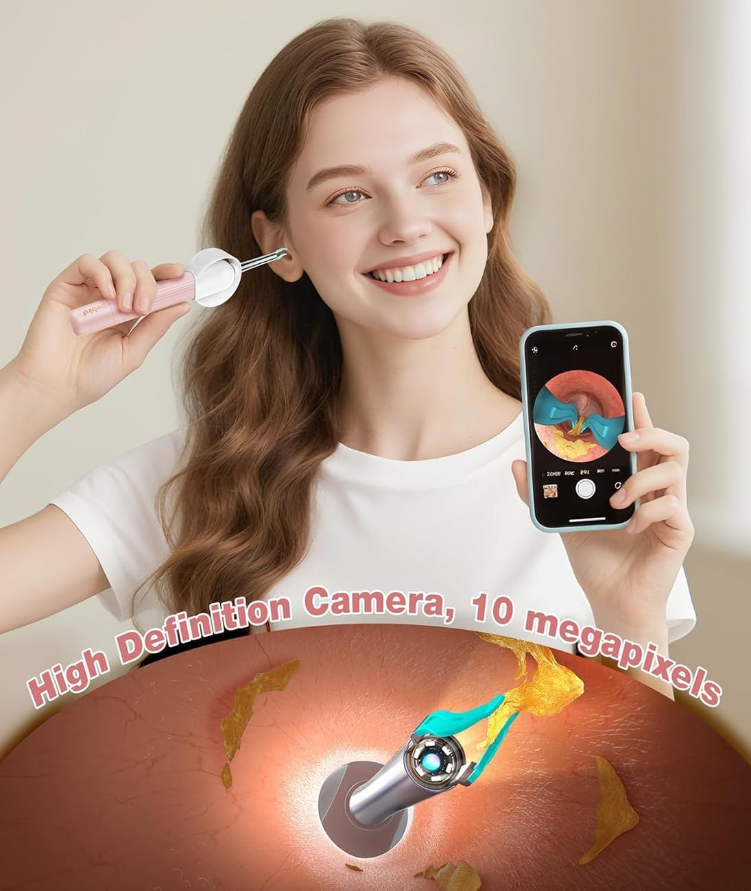 - HD Visual Clarity for Safe Inspection:Equipped with a 10MP HD camera and 1080p resolution, this ear cleaner delivers real-time, lag-free views of the ear canal—perfect for spotting tiny earwax or debris. Its 6 built-in LED fill lights ensure clear imaging even in low light, making at-home inspections (for dry/wet ears, or specific ear anatomies) easy and safe. Monitor ear health effortlessly while cleaning.