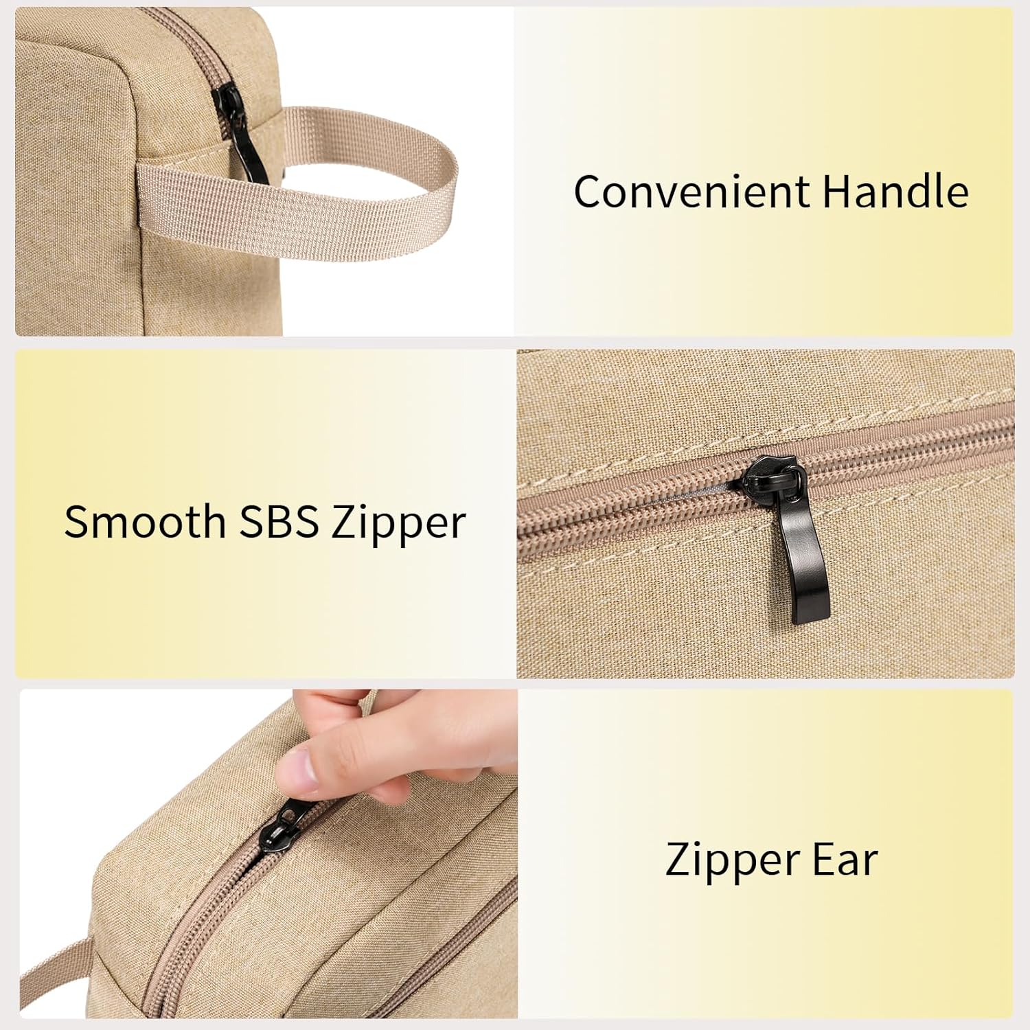 Travel Toiletry Bag, Hanging Water-Resistant Organizer for Men & Women, Ideal for Makeup, Shaving Kit, Gym Essentials & Travel Accessories (Khaki)