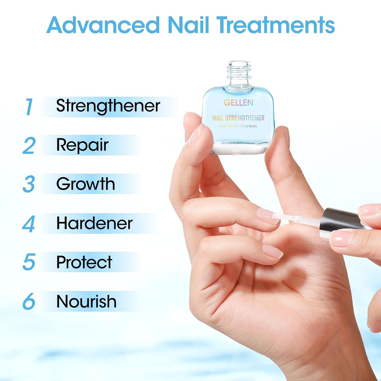- Pro Care Nail Strengthener & Pleasant Ocean Scent: Gellen 8-in-1 Nail Strengthener is specifically formulated to strengthen damaged nails, repair soft and weak nails, promote nail growth, and provide nourishment. Added multiple nourishing extracts to support healthy nail growth from the roots. It’s an excellent everyday nail care solution, especially for nail repair after gel polish removal.
