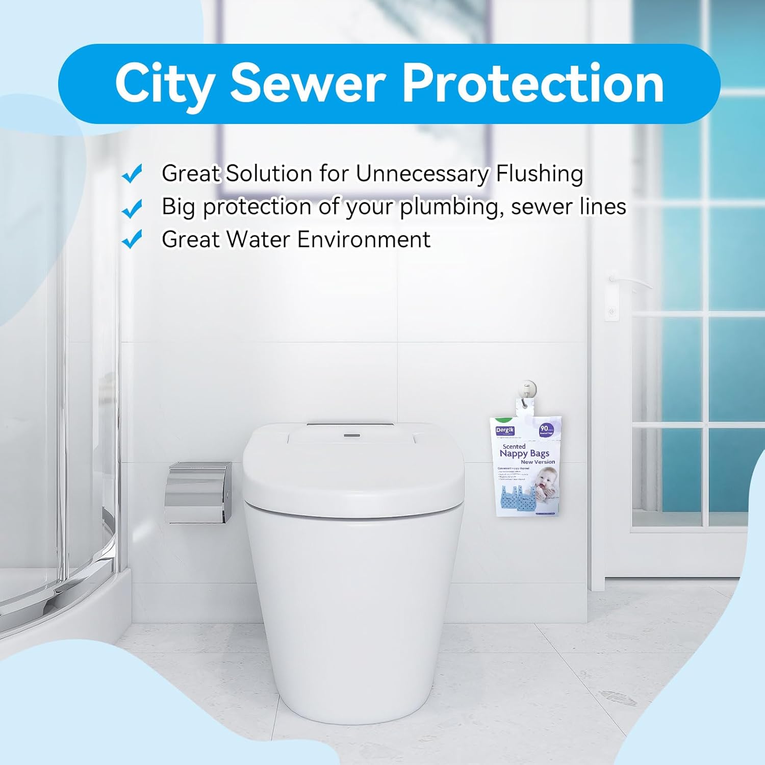 - ăCity Sewer ProtectionăNo matter new or old plumbing, there are unnecessary flushing, such as personal care items, bathroom wipes and feminine hygiene products,tampons, applicators, wipes, pads, menstrual discs, male protection products, and condoms. Big protection of your toilets,plumbing, sewer lines and septic system from expensive clogs and protect our water environment. It is nice for use at home, in RVs, boats . Also for your guests to use too.