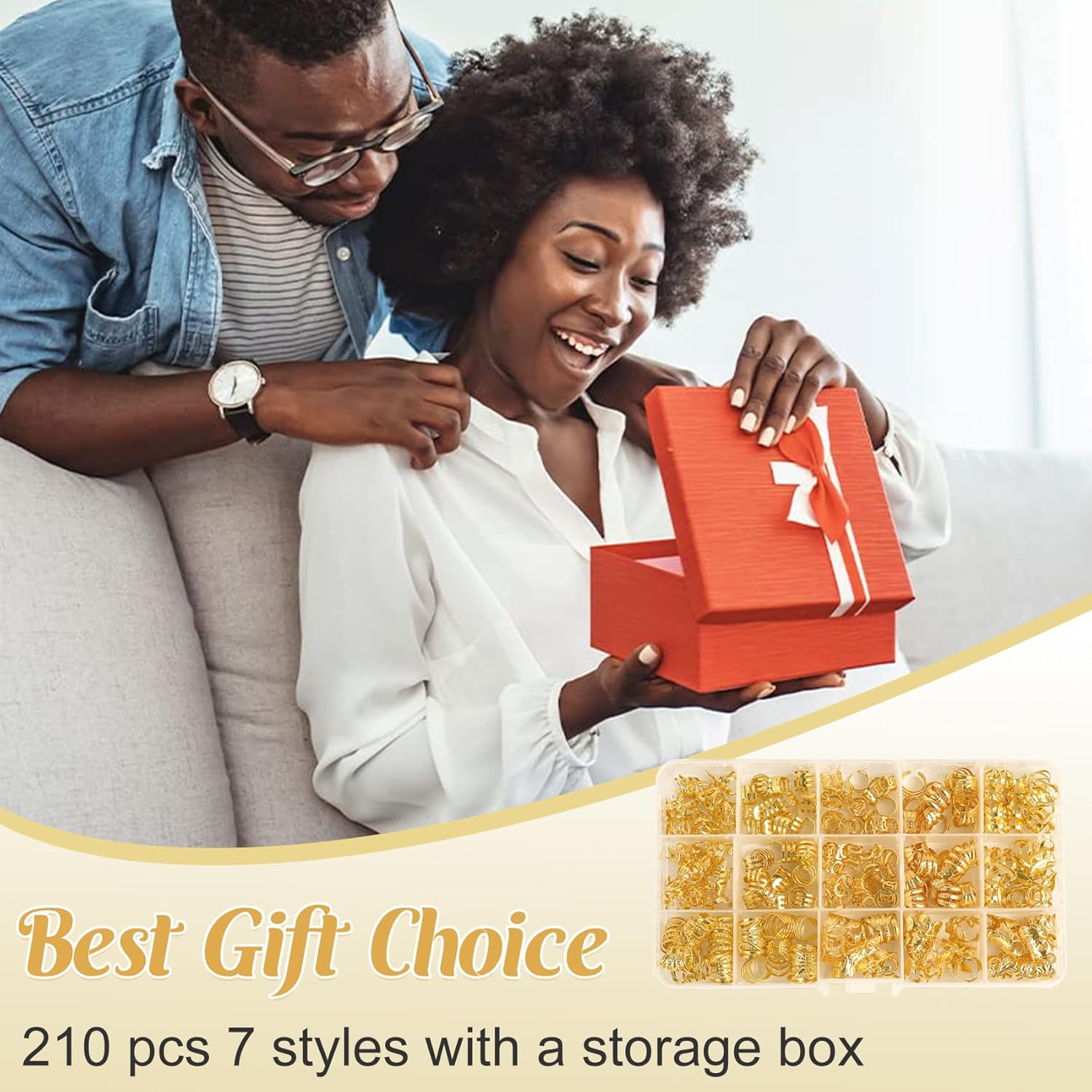 - Dreadlock Hair Jewelry Set:The package includes 210 pieces of 7 styles gold hair charms and a transparent storage box.So you can storage your hair accessories very well and enough quantity can satisfy your daily decorative needs for different occasions