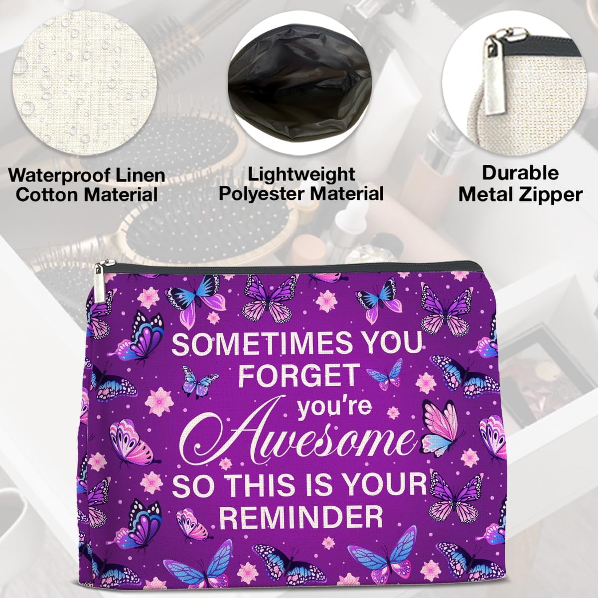 Purple Butterfly Makeup Bag Gifts for Women Purple Butterflies You're Awesome This Is Your Reminder Cosmetic Bag Zipper Pouch Travel
