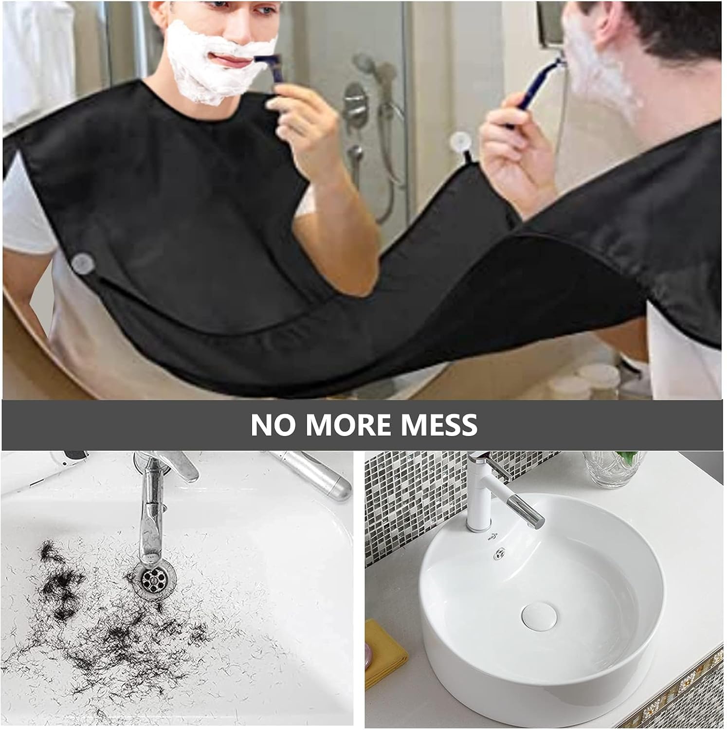 - [ Perfect Helper ] : With our apron beard hair, the bathroom is no longer messy. The best gift for boyfriend/husband/brother/father to shave at home. The best value of men's beard and beard care accessories, it can also be a perfect helper for women who like to cut their hair.