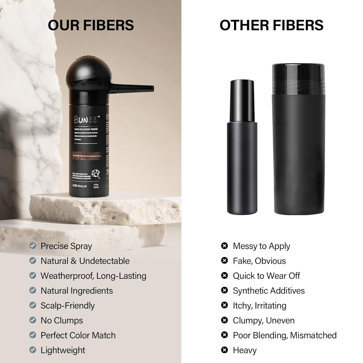 - 【All-Day Thickening Lock & Sweat-Resistant Hair Fibers】Hair thickening fibers cling tightly to even fine strands, resisting rain, humidity, and intense sweat. Maintains full coverage through 12+ hours—no midday touch-ups. Hair fibers wash out easily with shampoo, leaving no residue or scalp buildup