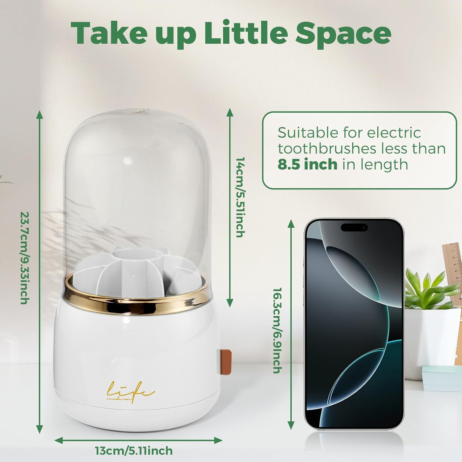 - 【360 Degree Rotating Toothbrush Holder】The tooth brush holder can be turned up to 360-degree rotation to the left and right, it spins smoothly all around without getting stuck. You can always get a toothbrush, electric toothbrushes, toothpaste, facial cleansers, shavers, tongue cleaners, and other oral care tools quickly and easily.