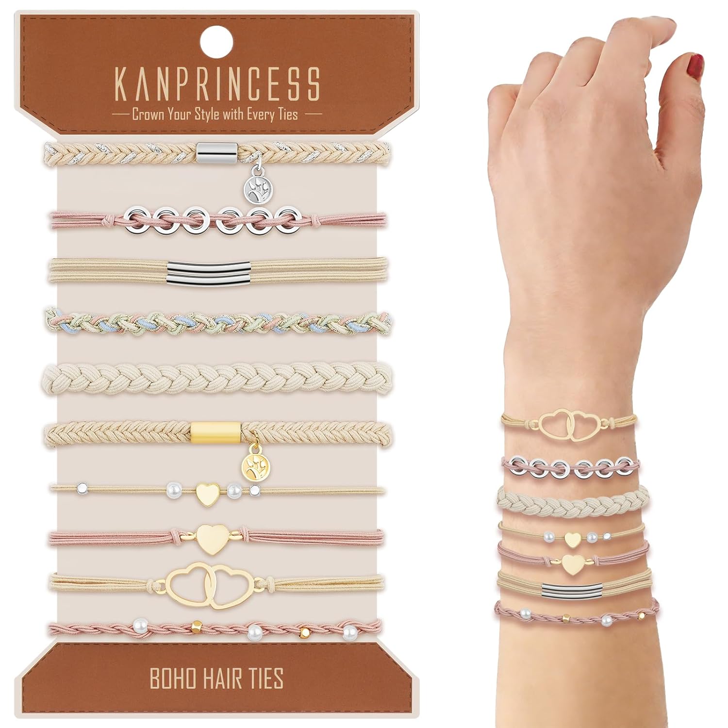Hair Tie Bracelet, 10 Pcs Boho Hair Ties For Girls and Women, Elastic Hair Ties, Hair Bands For Ponytails, Ponytail Holder For Daily Life, Sport, Cooking, Working (Set 13)