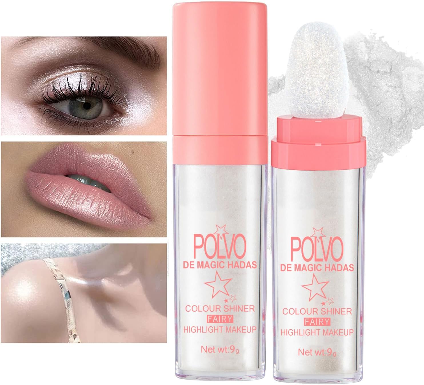 - 【Lightweight & Non Sticky】Feather-like non-flying powder provided satin finish on skin. Weightless, long-wear, diamond-dusted highlighter for the face and body in a range of shades, from subtle to supercharged. The superfine formula goes on smoothly and evenly, fresh and buildable delivers major chromatic impact. Soft sponge head, easy to apply and remove.