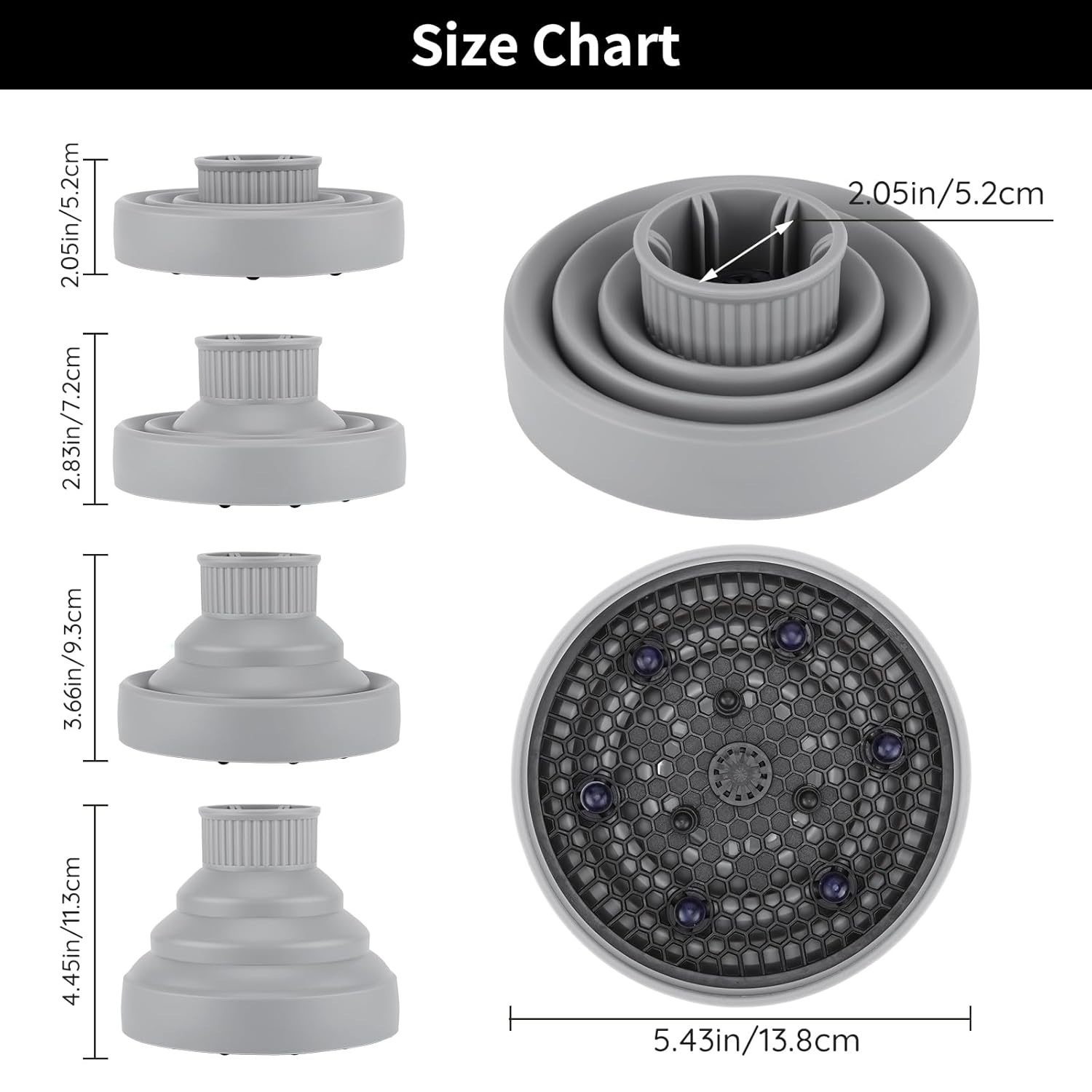 Segbeauty Collapsible Blow Dryer Diffuser, Travel Portable Hair Diffuser for Natural Curly Hair, Professional Lightweight Folding Diffuser Attachment for Dryers Nozzle 1.54 to 1.69 inches Gray