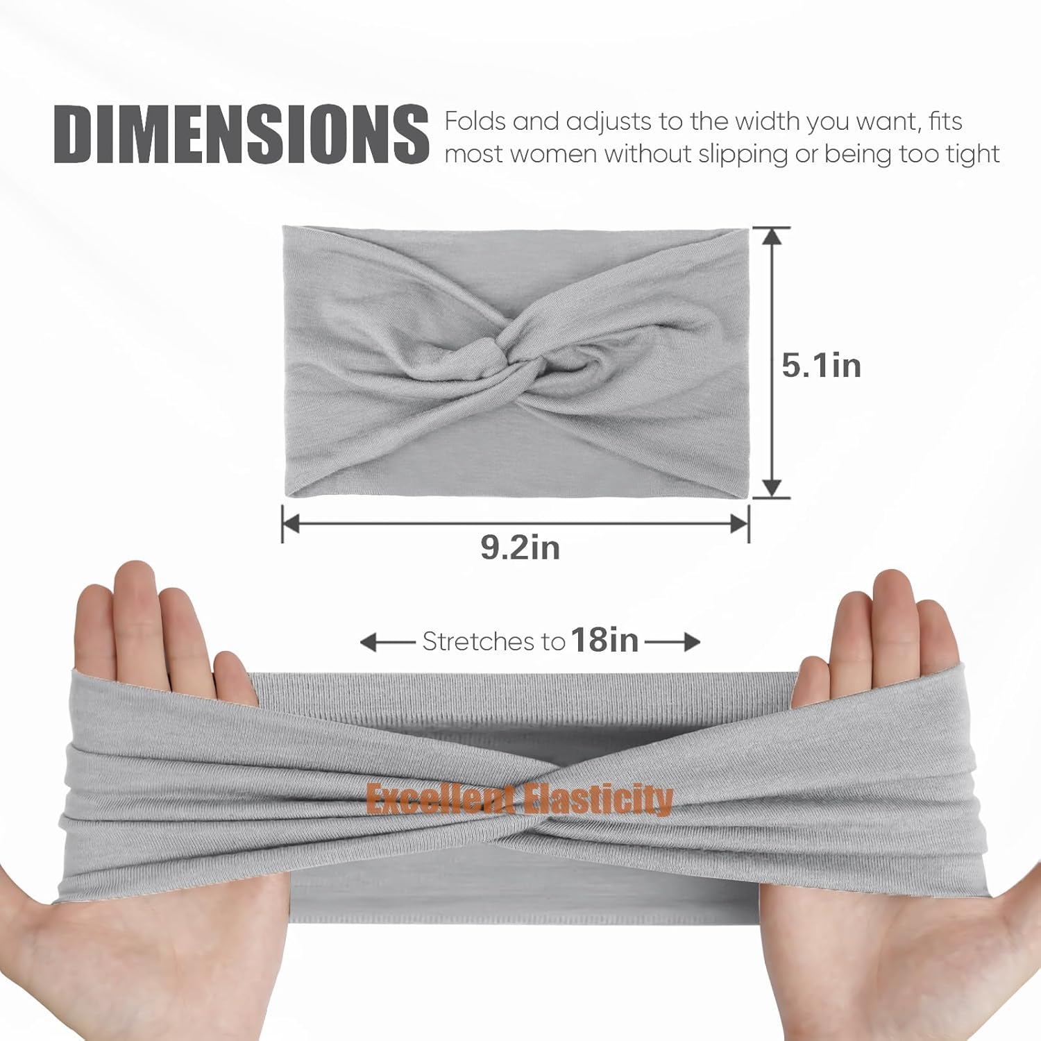 Headbands for Women, Non Silp Wide Hair Bands, Elastic Thick Head Bands, Stretchy Soft Sports Sweat Bands for Spa Workout Running Gym, Cotton Cloth Band 6Pcs GrayBurgundyGreenBlackCoffeeNavy