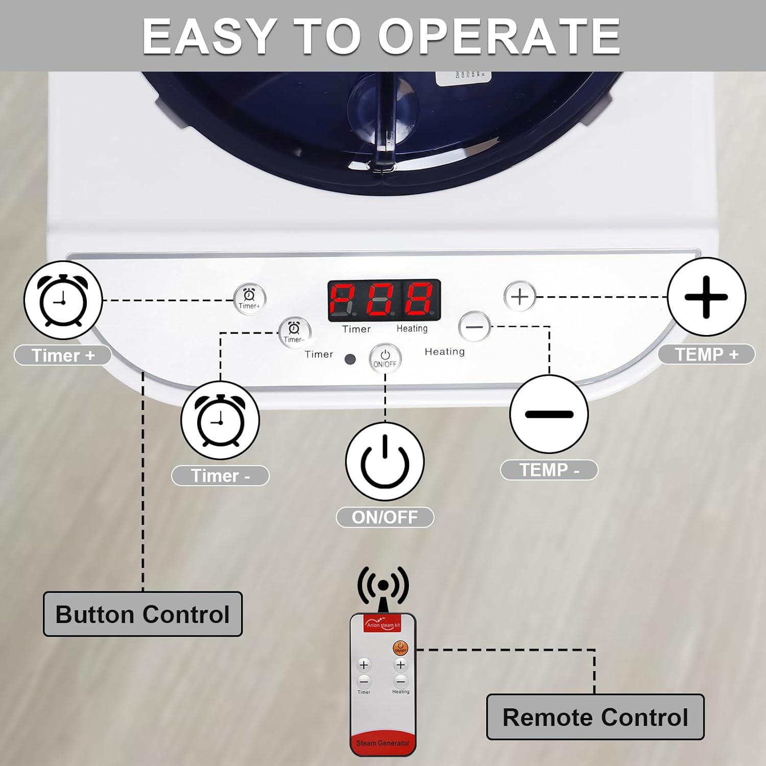 - 【EASY TO OPERATE】Enjoy the convenience of home sauna with this powerful 4.0L, 1500W large capacity steam pot that perfectly meets your needs. With 9 adjustable heating levels, 1-99 minute time setup, and the ability to operate for 90 minutes on a full water tank, this portable steamer pot heats up rapidly. Easily adjust the temperature and time using the included remote control for a personalized experience