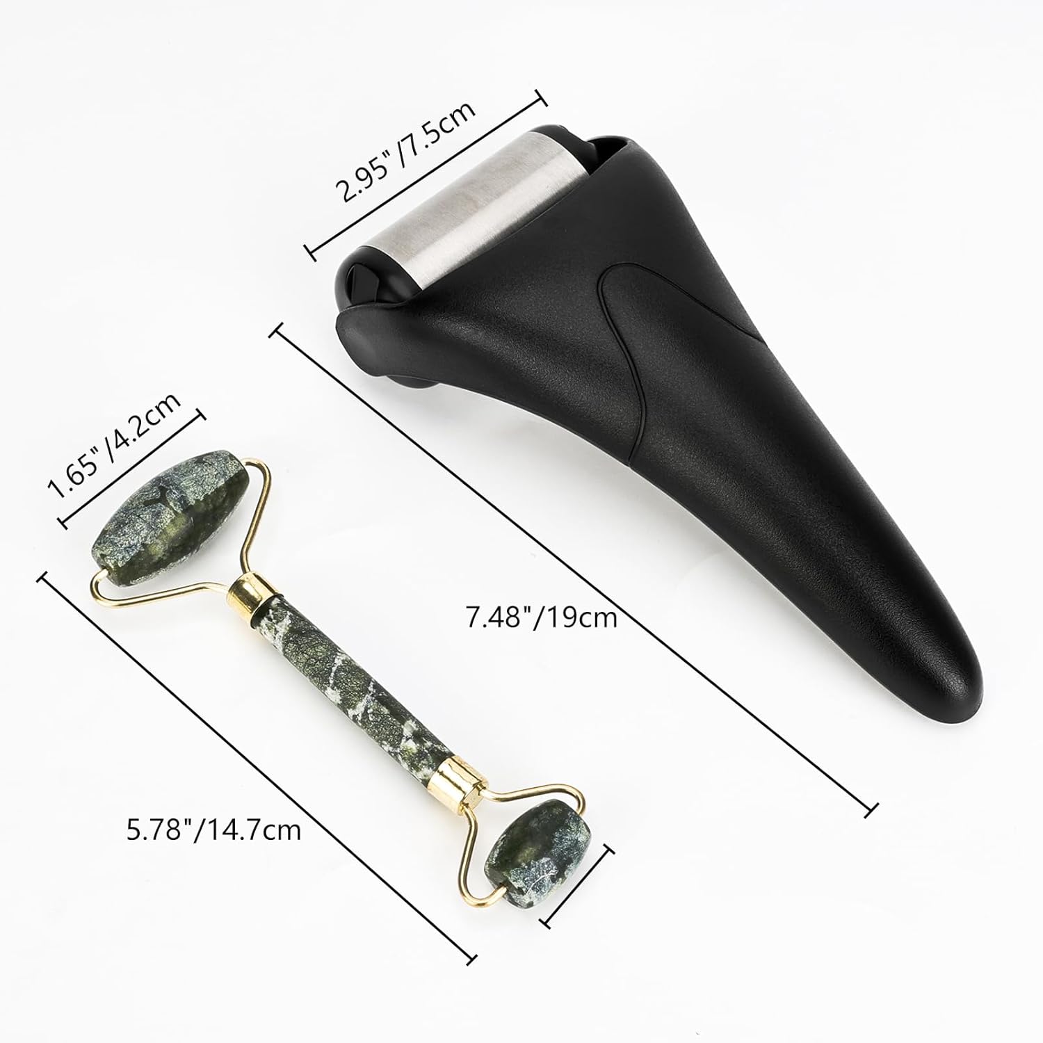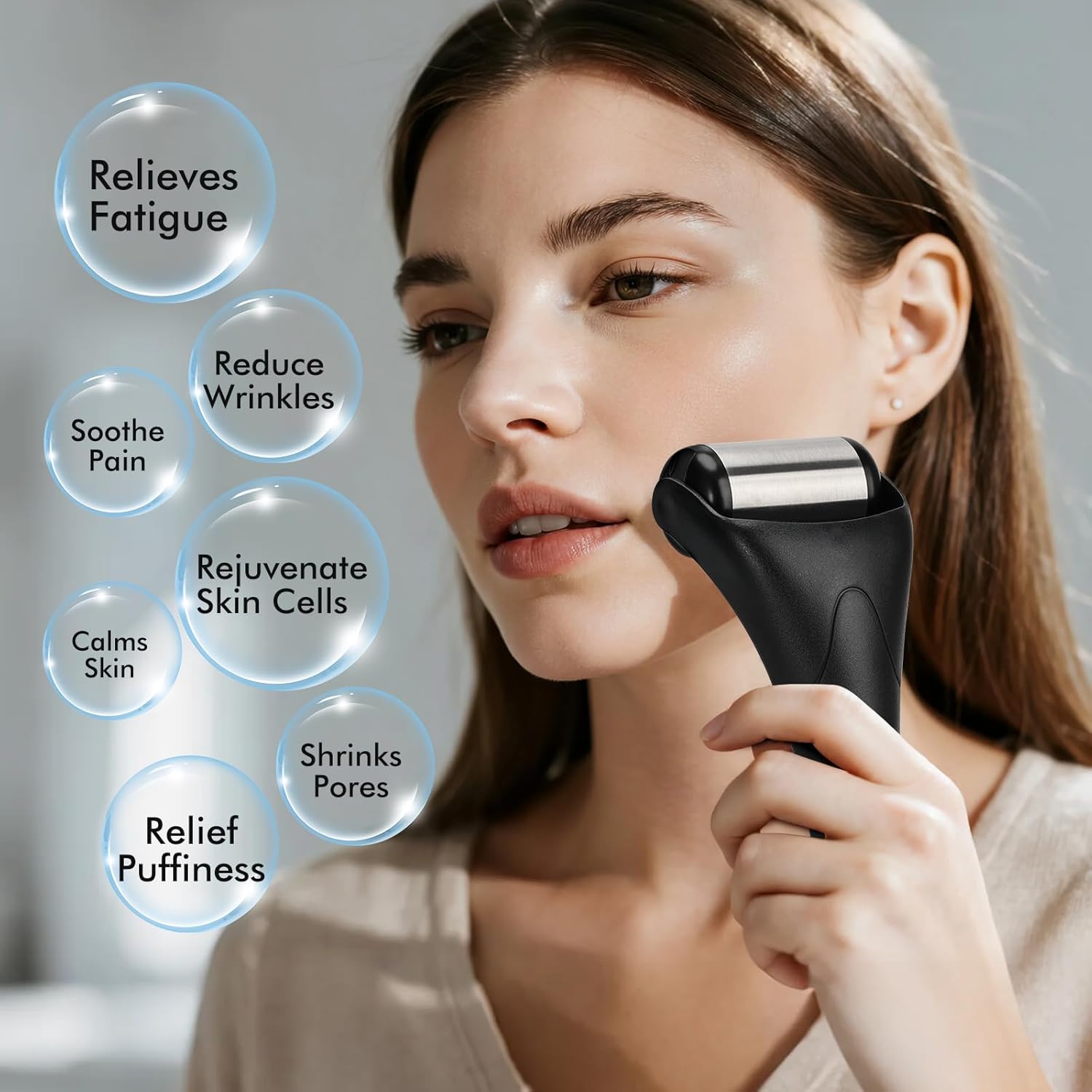 Stainless Steel Ice Roller for Face & Eye, Puffiness Migraine Pain Relief, Face Massager Jade Face Roller Skin Care Tools Self Care Gift Manual for Men Women