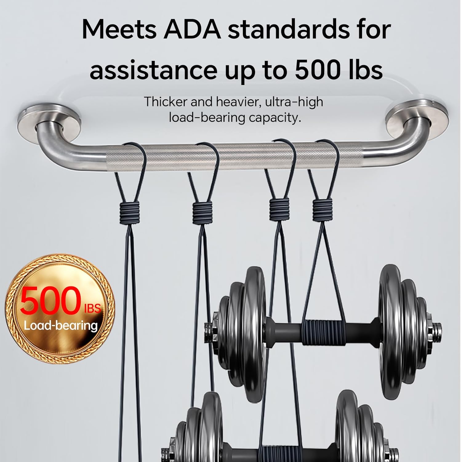- PREMIUM CONSTRUCTION Crafted from heavy-duty 304 stainless steel, our bathroom safety grab bars are completely waterproof, rust-resistant, and built to last. With a remarkable 500-pound weight capacity, they provide essential stability for seniors, post-surgery patients, and anyone needing extra support - transforming your bathroom into a safer space.