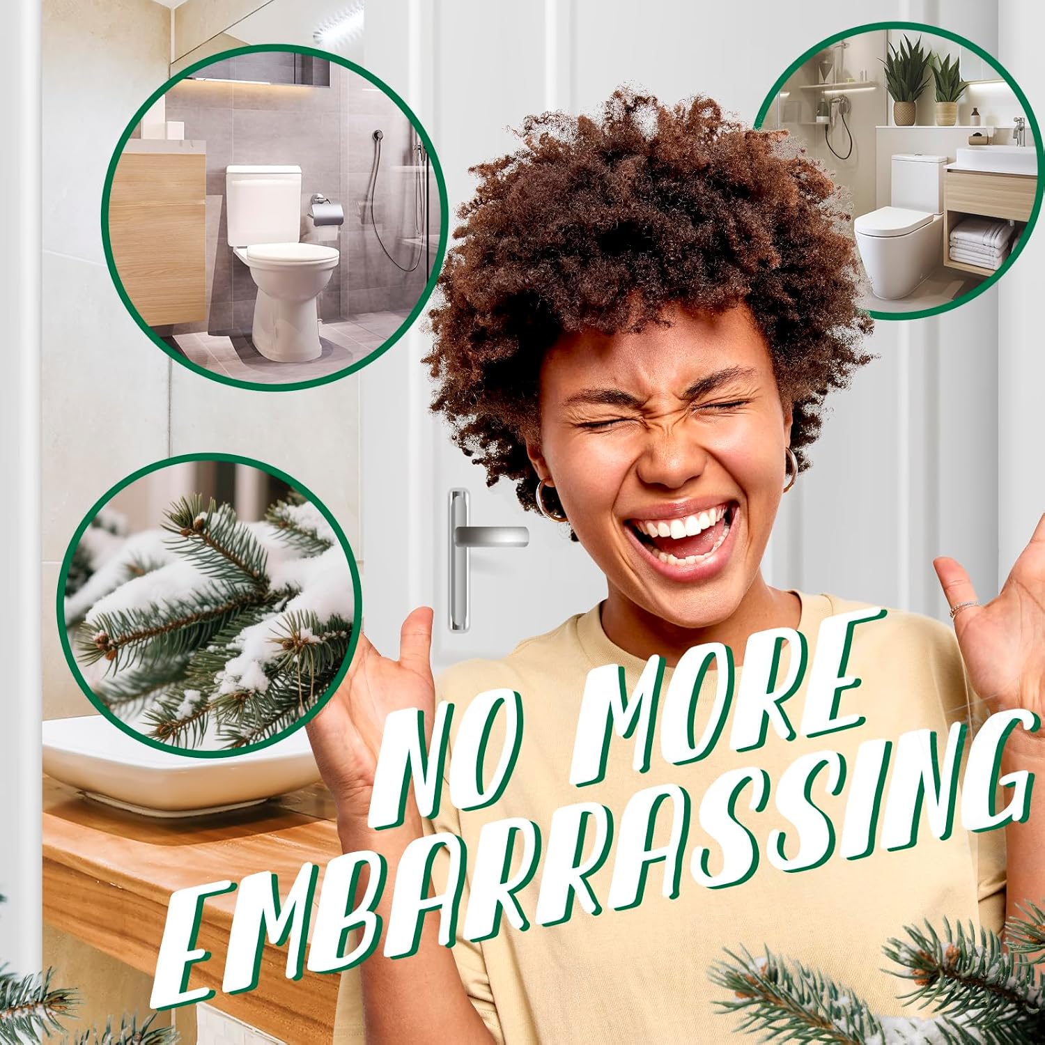 - Scent: A blend of Balsam Cedar, Eucalyptus, Pine. It removes bathroom odors before they begin so you can step away feeling fresher than when you arrived
