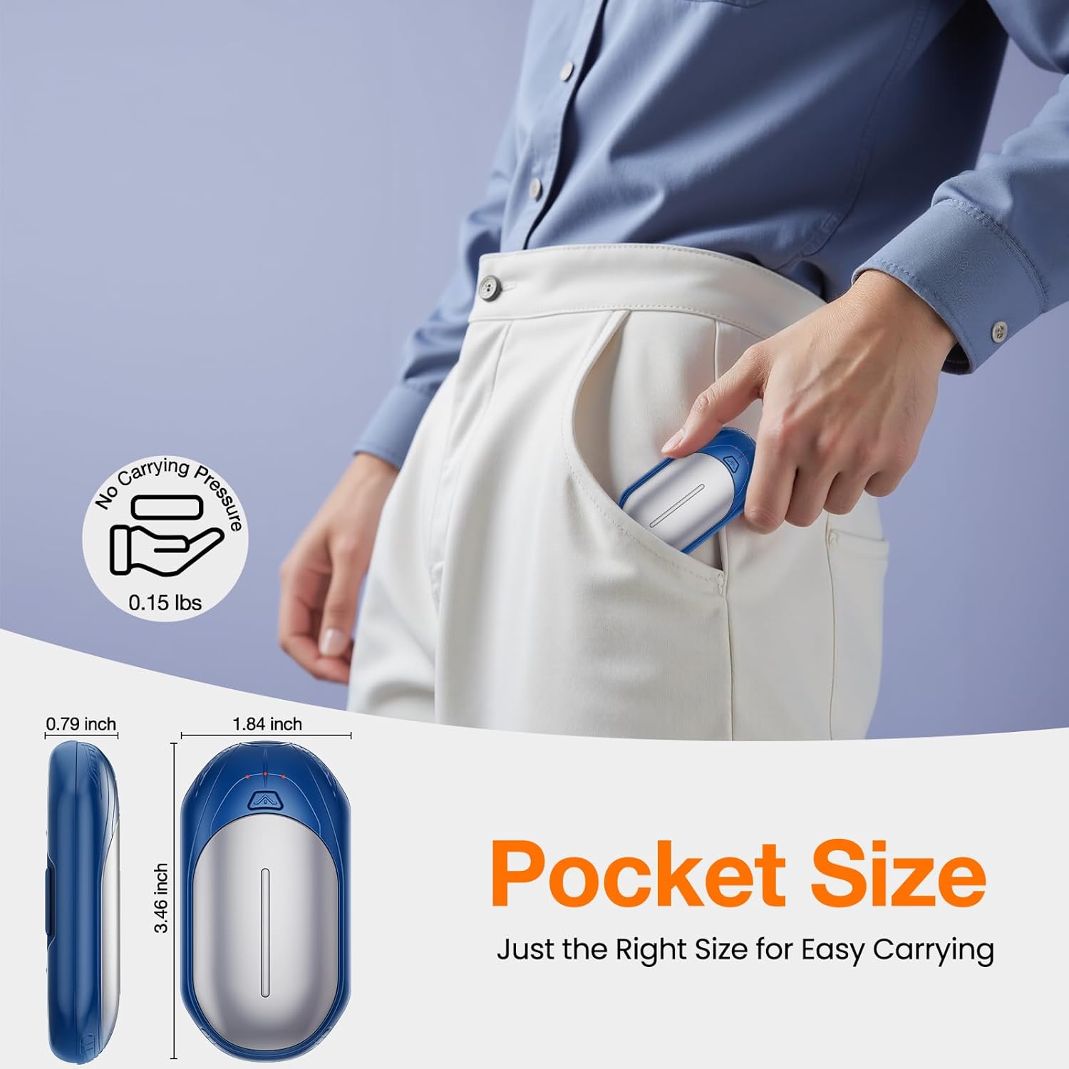 - AI Hand Warmers Rechargeable 2 Pack, AI Smart Chips 6000mAh Electric Hand Warmers, 20Hrs Long Safe Heat, Portable Pocket Heater, Gifts for Christmas, Outdoor, Golf, Hunting, Camping Accessories -Blue