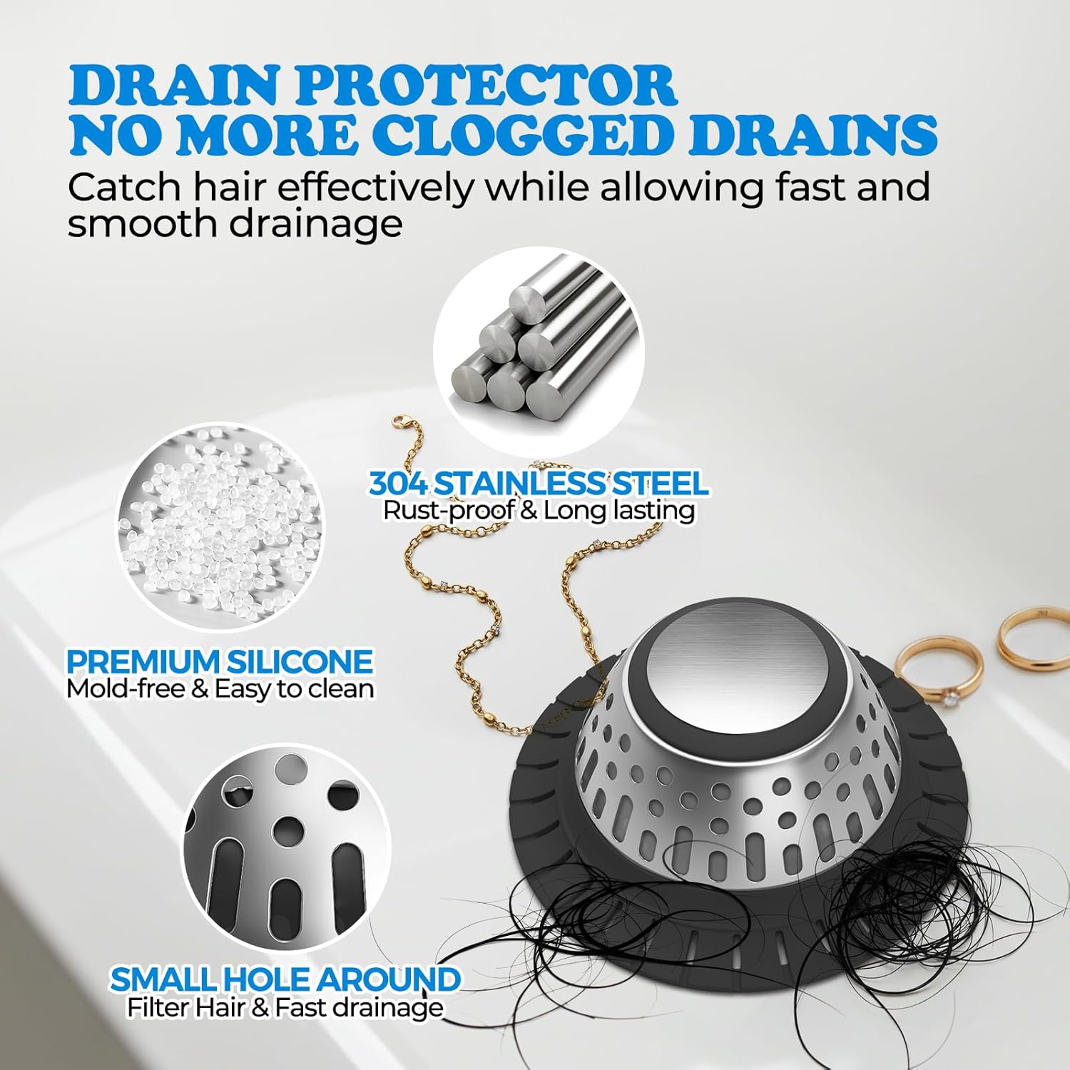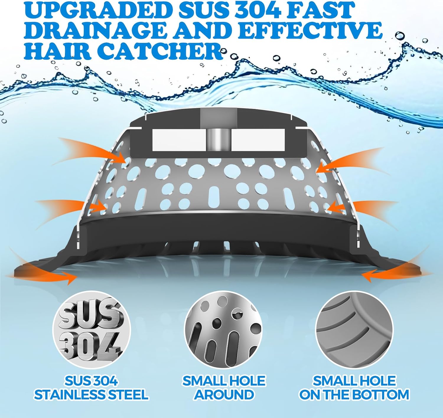 - 【Upgraded SUS 304 STAINLESS STEEL】This bathtub drain hair catcher is made of 304 stainless steel, rustproof and ant-corrosion. The thick steel ensure long-term lasting and durability. Also a perfect decor to your bathroom bathtub, tub, shower or sink