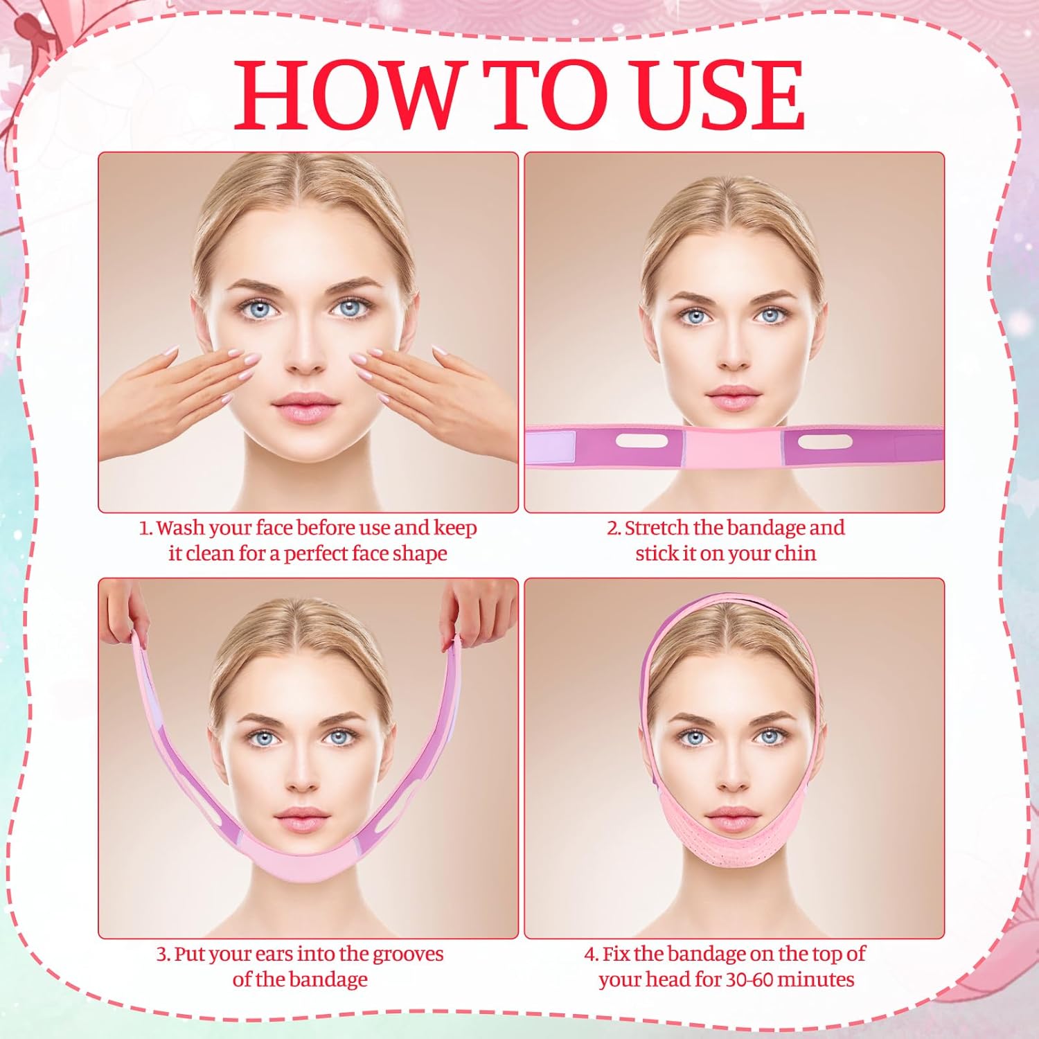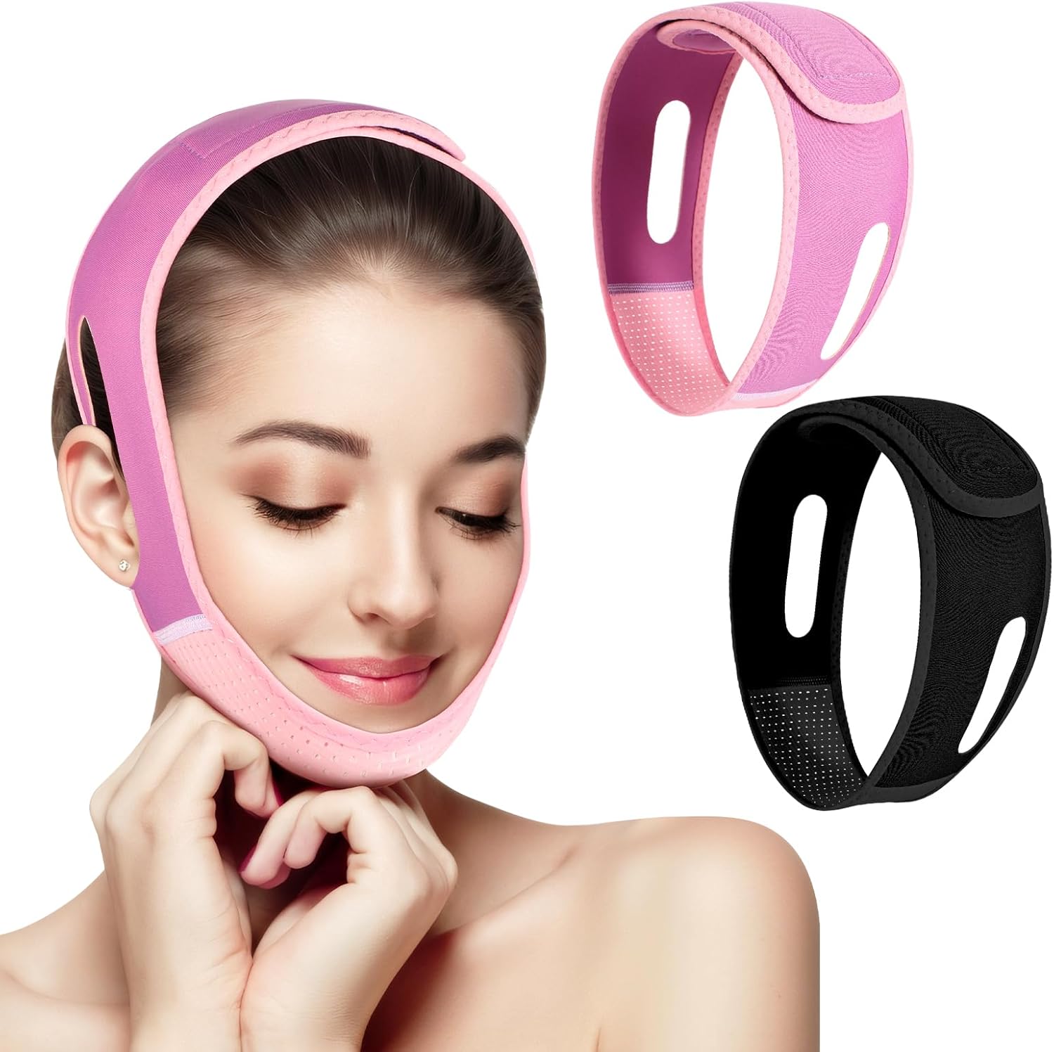 V Line Lifting Mask Chin Strap for Sleeping 2 Pcs, Adjustable Reusable Jaw Strap Face Lifting Belt Facial Slimming Straps Double Chin Reducer