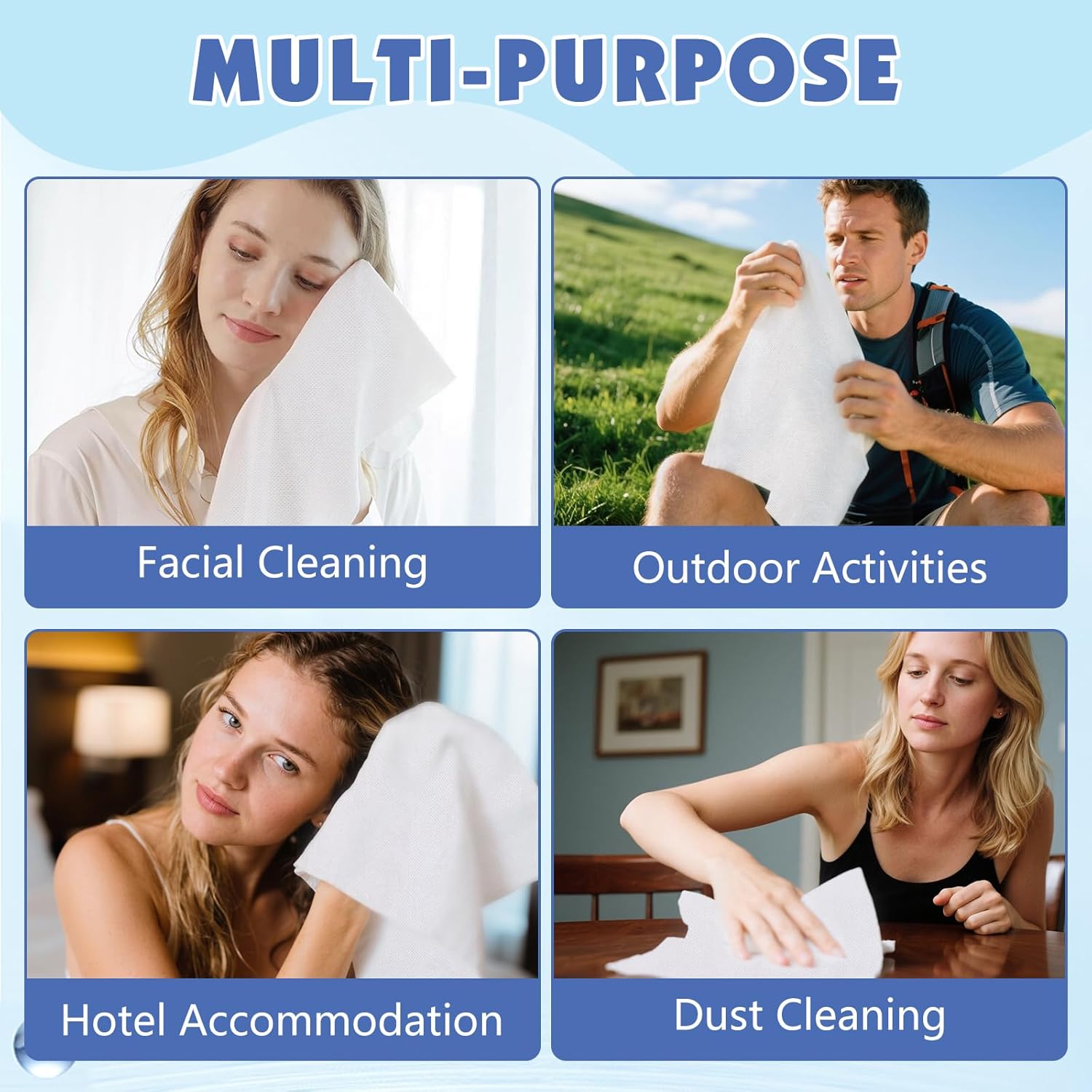 - 【Skin Friendly & Hypoallergenic】Our compressed towel tablets is soft and hypoallergenic, they won't irritate your skin and they can quickly clean your face, neck, shoulders, arms, hands, legs, etc. They can also be used for babies and pet