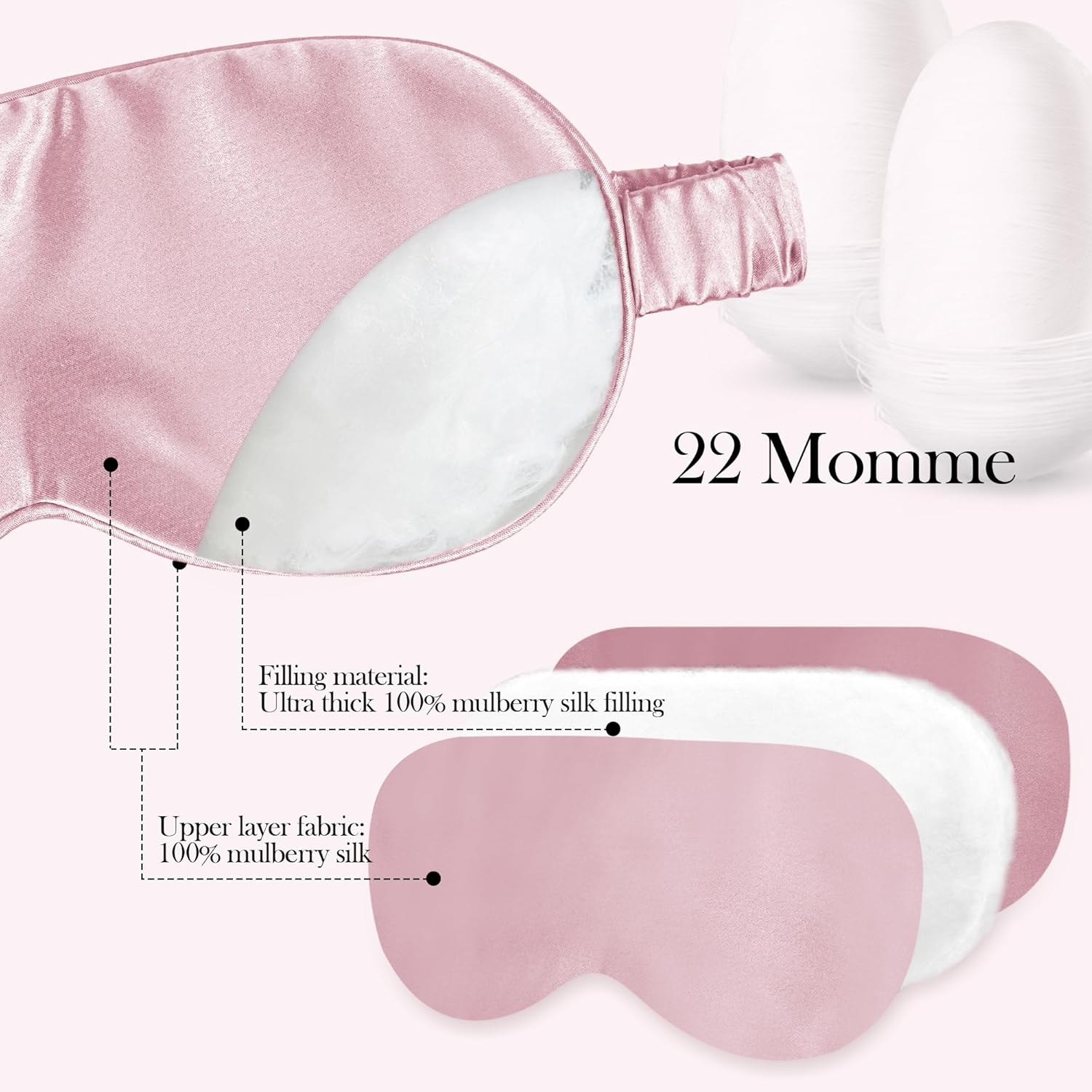 - [22 Momme Mulberry Silk , No Synthetic Blends]:Made with 22 momme silk fabric (higher density for durability), this sleep mask blackout is purely silk—zero polyester or synthetic additives.It's truely natura fabric ultra-smooth & skin-friendly.