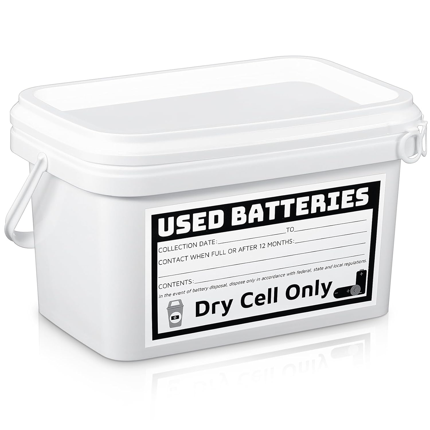 - Complete Battery Disposal Package: the package includes 1 white recycling container and 1 battery recycling label; This 1.32 gallon container provides an affordable solution for disposing of battery waste; The included battery disposal container easily blends into any environment, fully embodying the convenience and ease of practicing green environmental protection