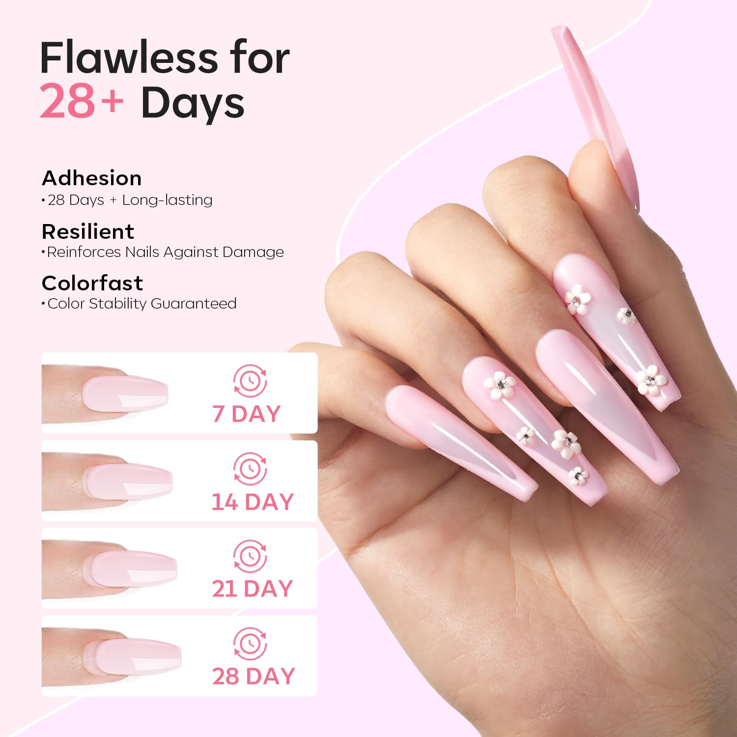 - Upgraded Non-Yellowing Formula: Enhanced clear acrylic powder base resists discoloration for 180+ days. Self-leveling technology ensures bubble-free, glossy finish