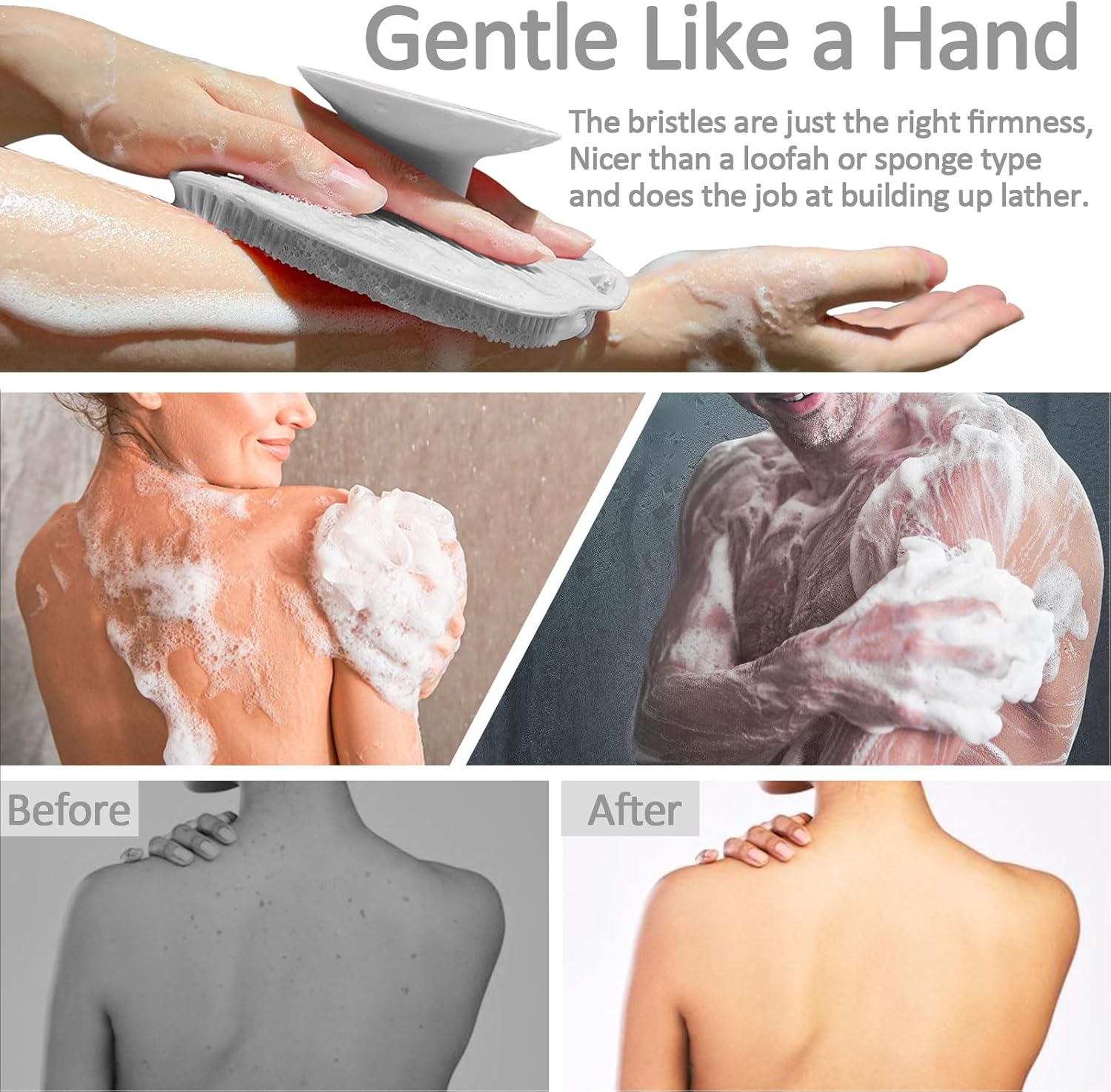 Soft Silicone Body Scrubber, Gentle Like a Hand Exfoliating Your Skin and Build Up Lather, Back Large Suction Cup Easy to Store, & Deep Clean (Body Scrubber + Face Scrubber Gray)