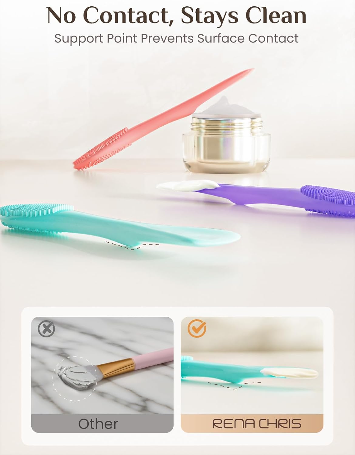 - Multi-functional Design: The face brushes for cleansing can apply and remove masks, clean and massage the face; Its uniquely designed supporting bumps prevent the scraper from touching the countertop when placed, keeping the scraper clean