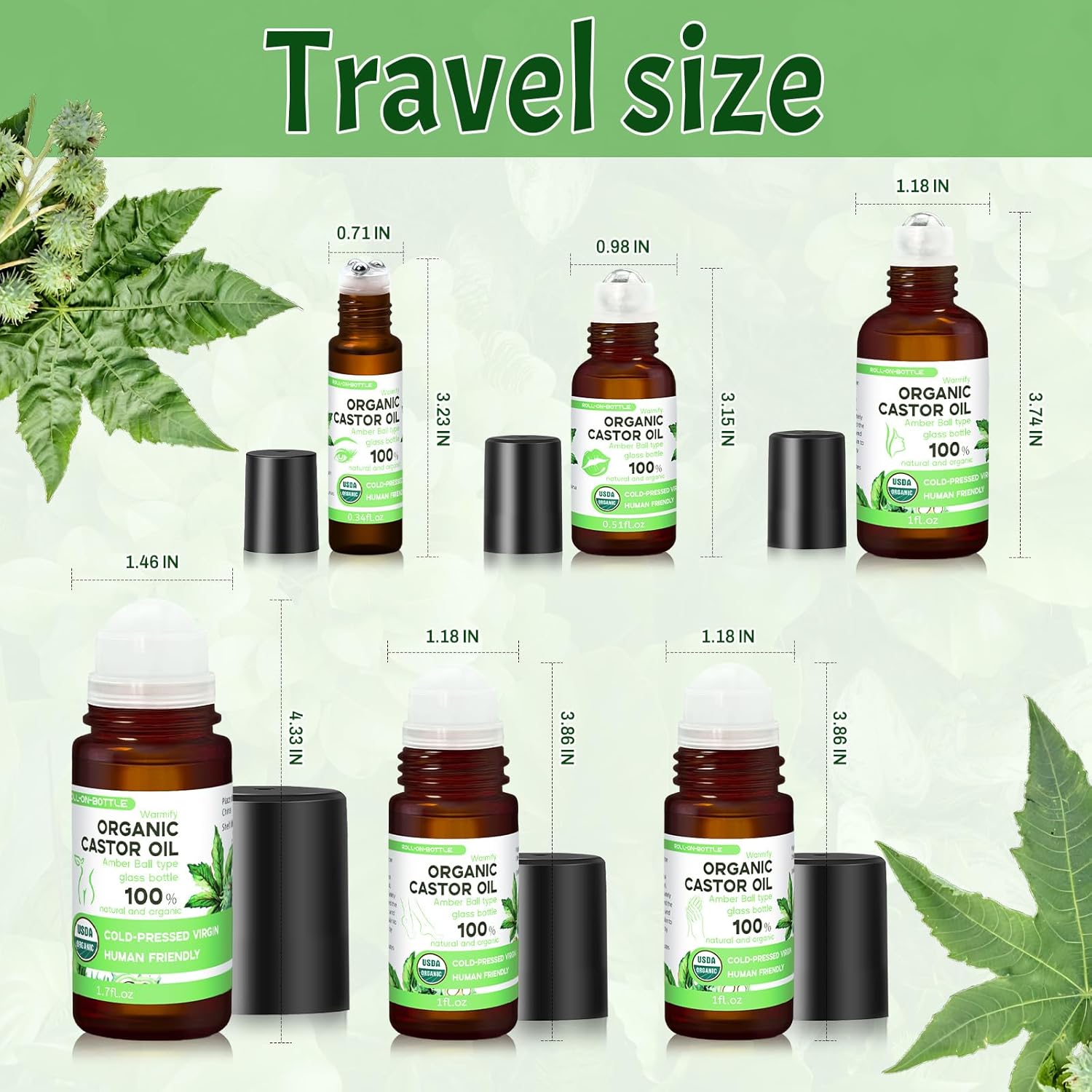 - PORTABLE & SELF-CARE FRIENDLY - The compact, leak-proof design makes this roll-on castor oil set ideal for work, travel, or on-the-go wellness routines. Enjoy a relaxing spa experience anytime, anywhere—no salon needed.