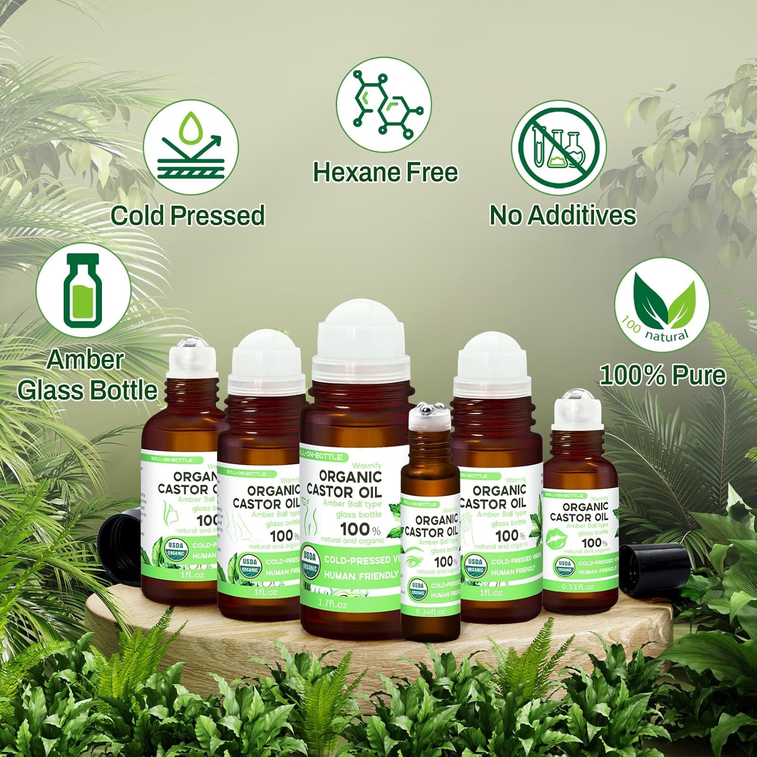 - CERTIFIED ORGANIC CASTOR OIL - Our roll on castor oil Made from pure,natural organic ingredients, cold-pressed and hexane-free to retain nutrients. Stored in UV-protective amber glass bottles for long-lasting freshness and application to eye,belly face, and body.