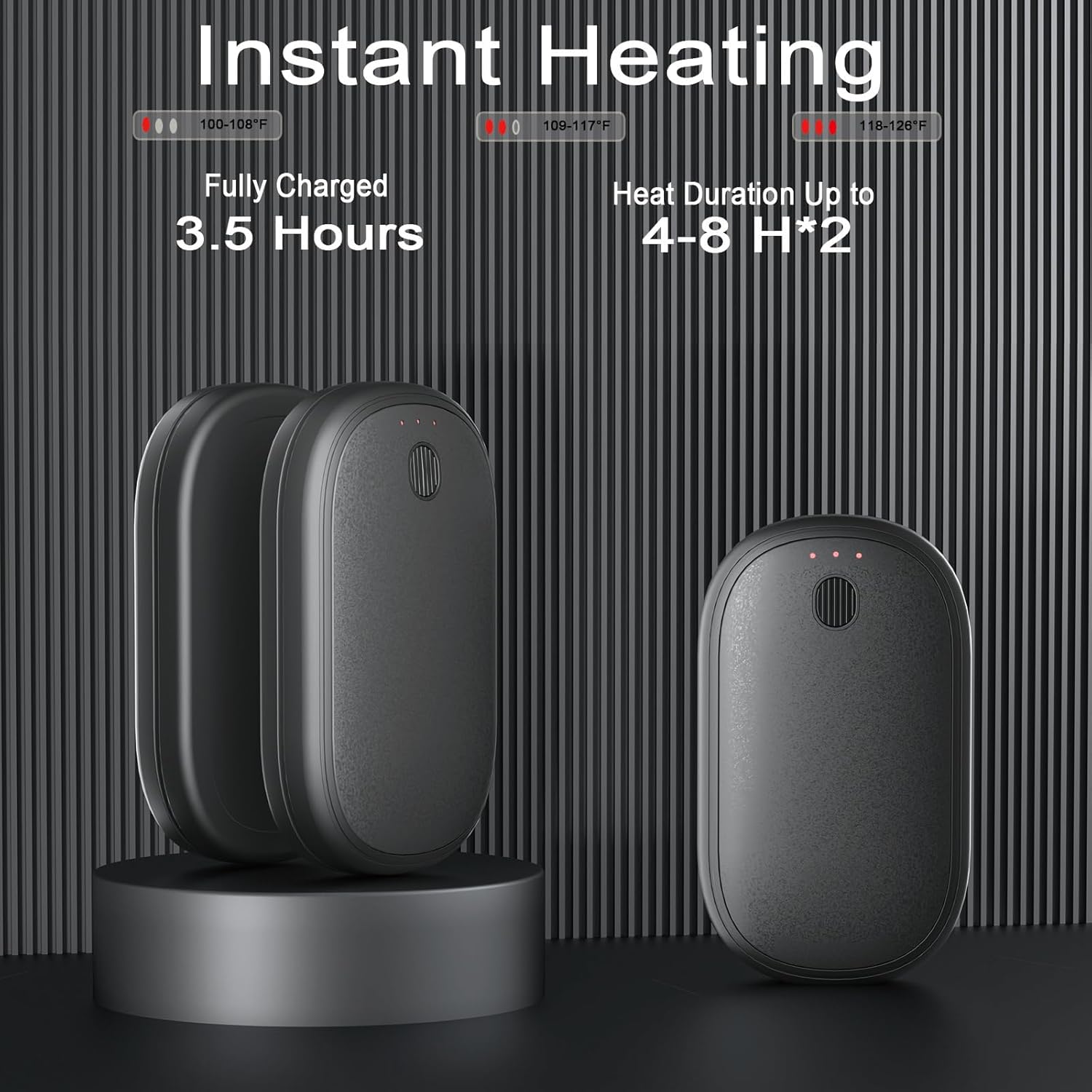 - INSTANT HEAT & 3 SMART SETTINGS : Get warmth in just 3 seconds—no more shivering while waiting with our portable hand warmers ! Customize your comfort with 3 temperature settings (up to 126°F), good for quickly thawing frozen fingers or maintaining a gentle glow for hours during camping, hiking, or skiing adventures .