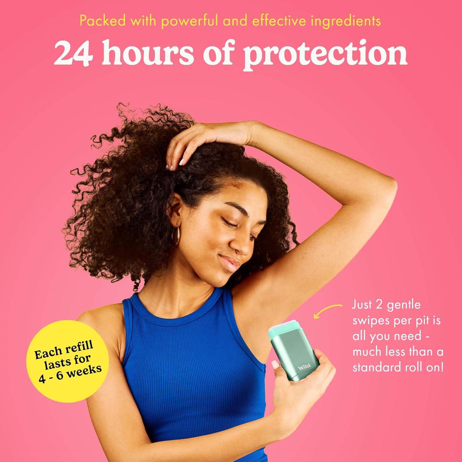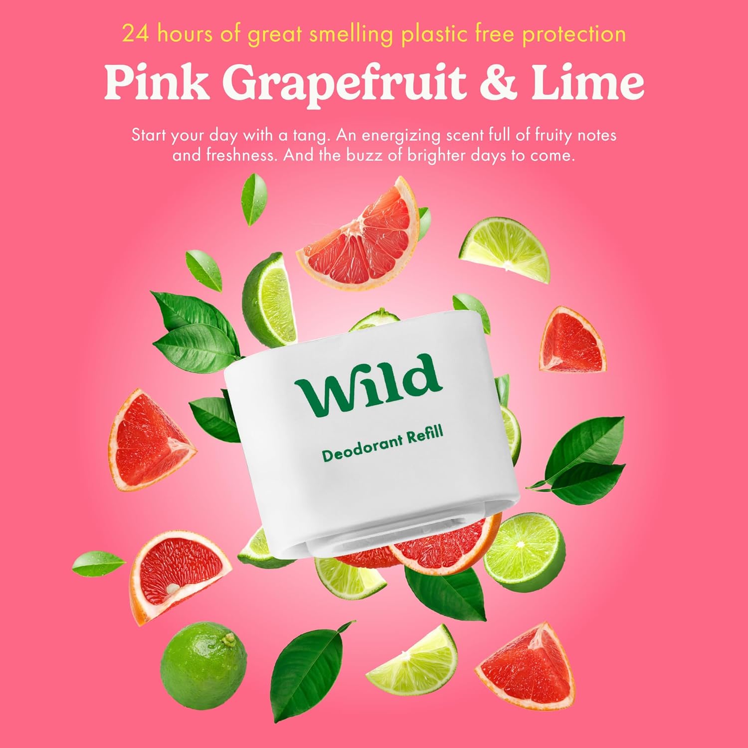Wild - Refillable Deodorant Starter Kit with Aqua Case and Pink Grapefruit & Lime Scented Refill 1.4oz - Aluminum Free - Long Lasting Protection - Vegan