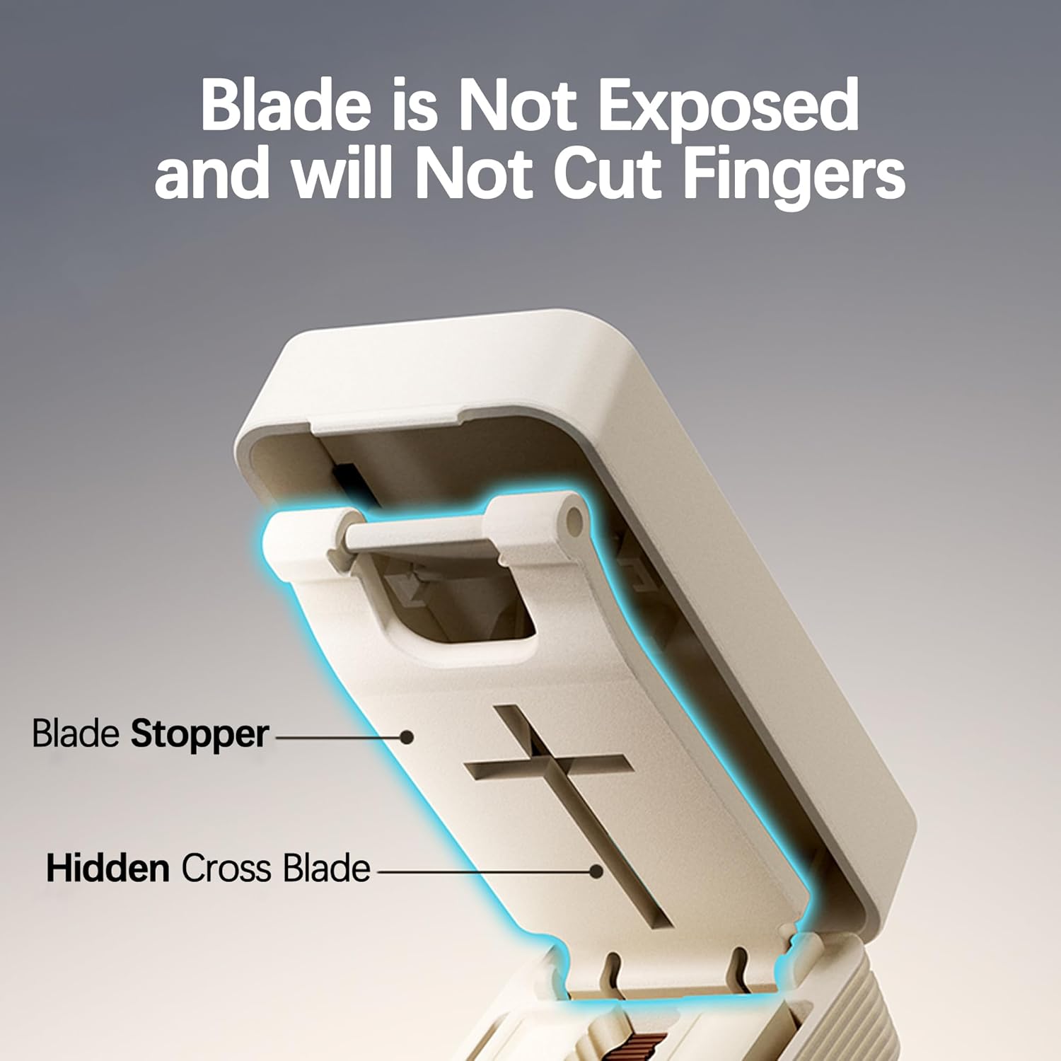 - 【Hidden Blade】This pill cutter for small and tiny pills features a sharp stainless steel blade that cuts your pills clearly, the silicone pad on the bottom reduces pill crushing. The hidden blade prevents accidental cuts to your fingers, use it with confidence