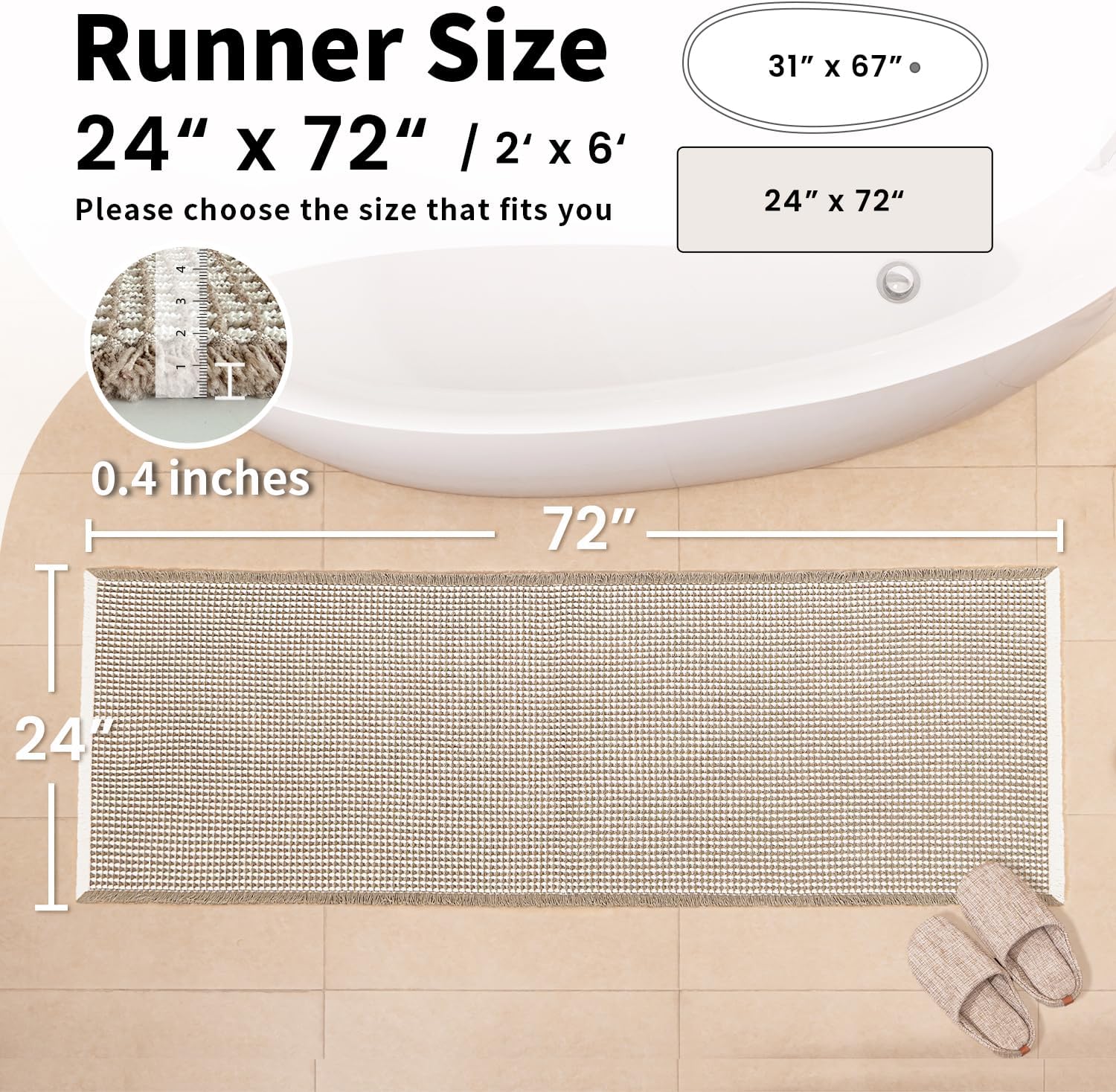 Waffle Runner Bath Mat - Long Boho Bathroom Rugs Non Slip Washable, Super Absorbent & Quick Dry, Soft Bath Mat Farmhouse Bathroom Decor, 24'' x 72'', Khaki and White