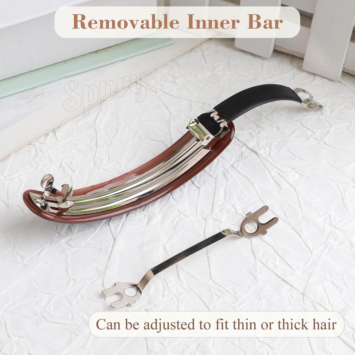 French Large Arc-shaped Adjustable Hair Clip Barrette for Women, Automatic Clasp (Dark Brown)