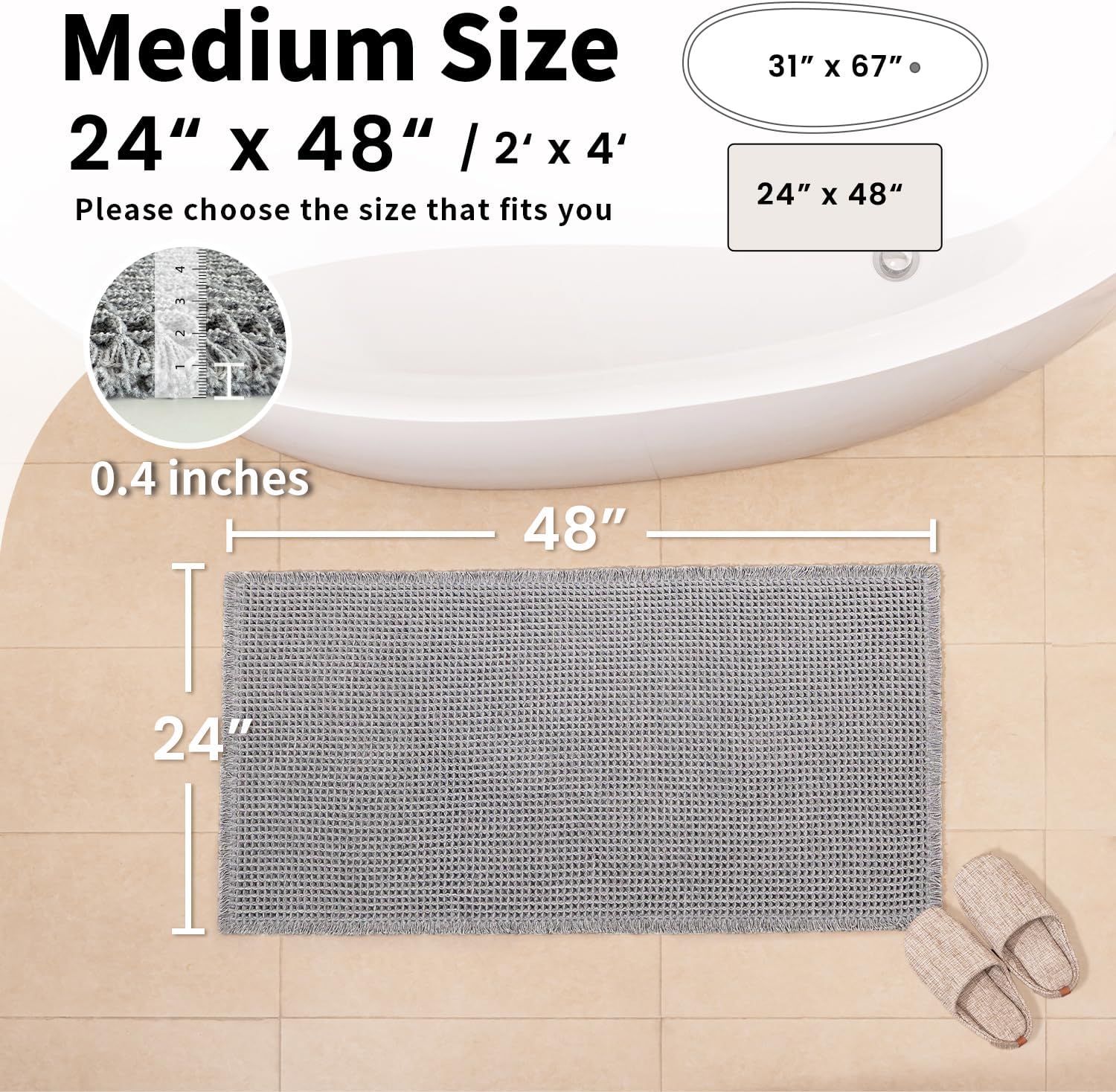 Waffle Bath Mat - Boho Bathroom Rugs Non Slip Washable, Super Absorbent & Quick Dry, Soft Bath Mat Farmhouse Bathroom Decor, 24'' x 48'', Light Grey