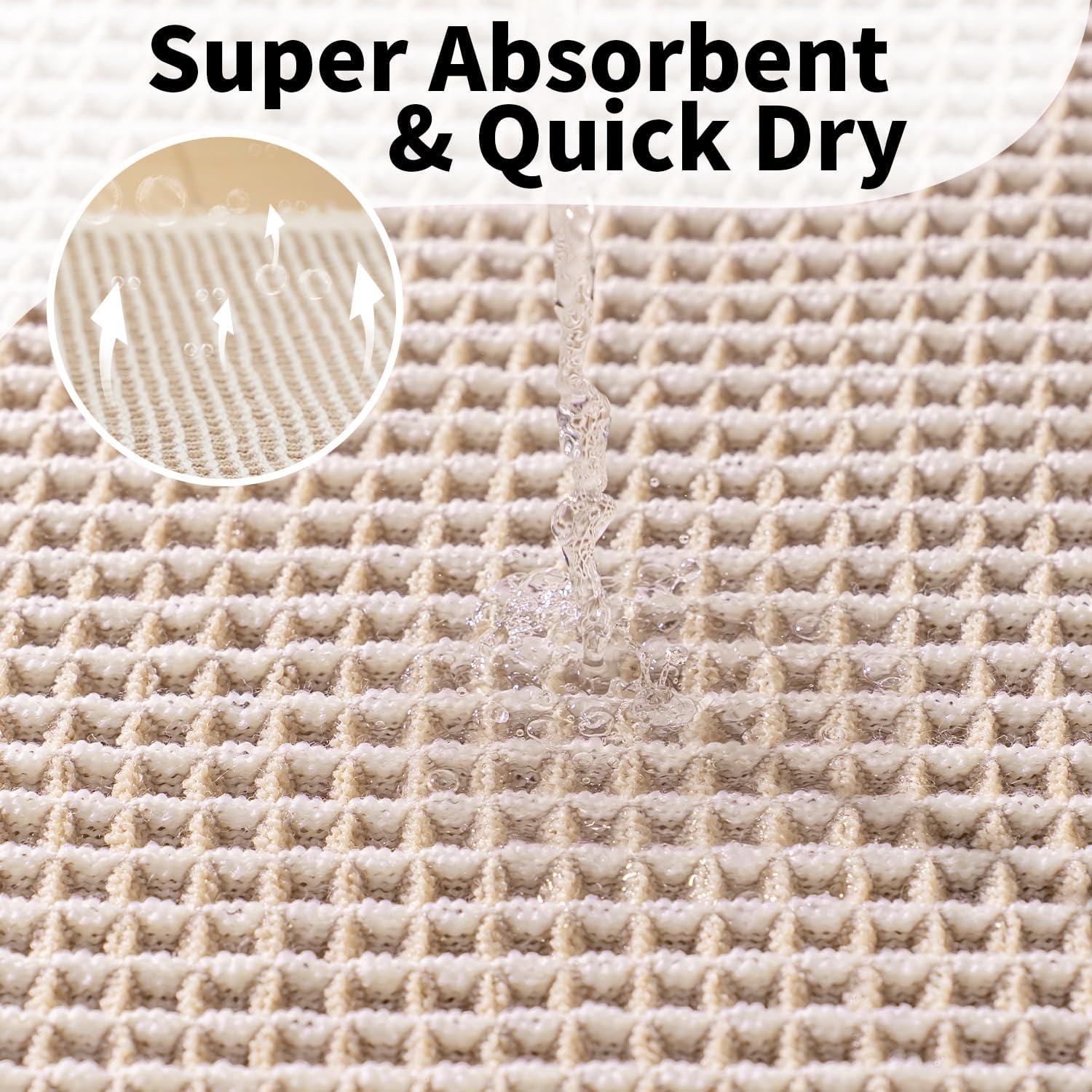 Waffle Bath Mat - Boho Bathroom Rugs Non Slip Washable, Super Absorbent & Quick Dry, Soft Bath Mat Farmhouse Bathroom Decor, 24'' x 36'', Khaki and White