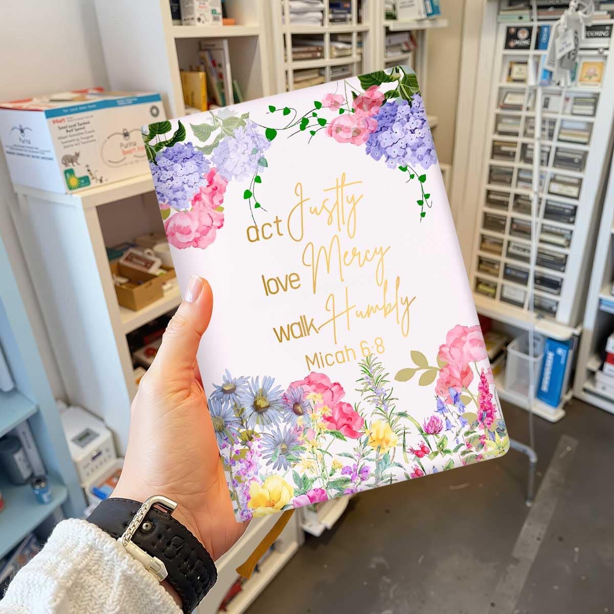 - Preppy & Inspirational Design – Bible Verse Cover: Clean, simple, and meaningful. The pink bow and watercolor flower cover give off a trendy coquette vibe while keeping your faith front and center. Aesthetic, minimal, and made to inspire.