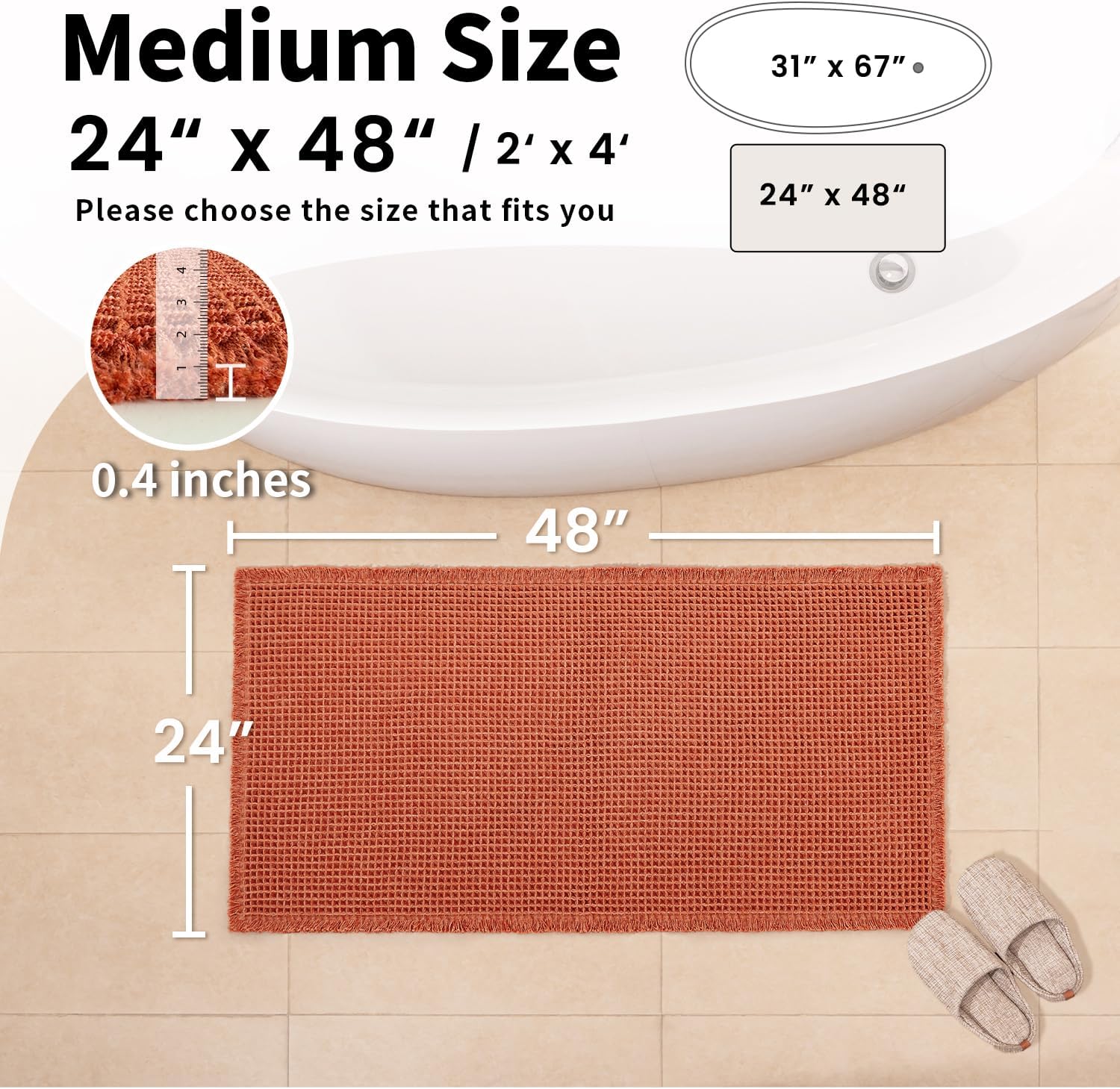 Waffle Bath Mat - Boho Bathroom Rugs Non Slip Washable, Super Absorbent & Quick Dry, Soft Bath Mat Farmhouse Bathroom Decor, 24'' x 48'', Dirty Orange
