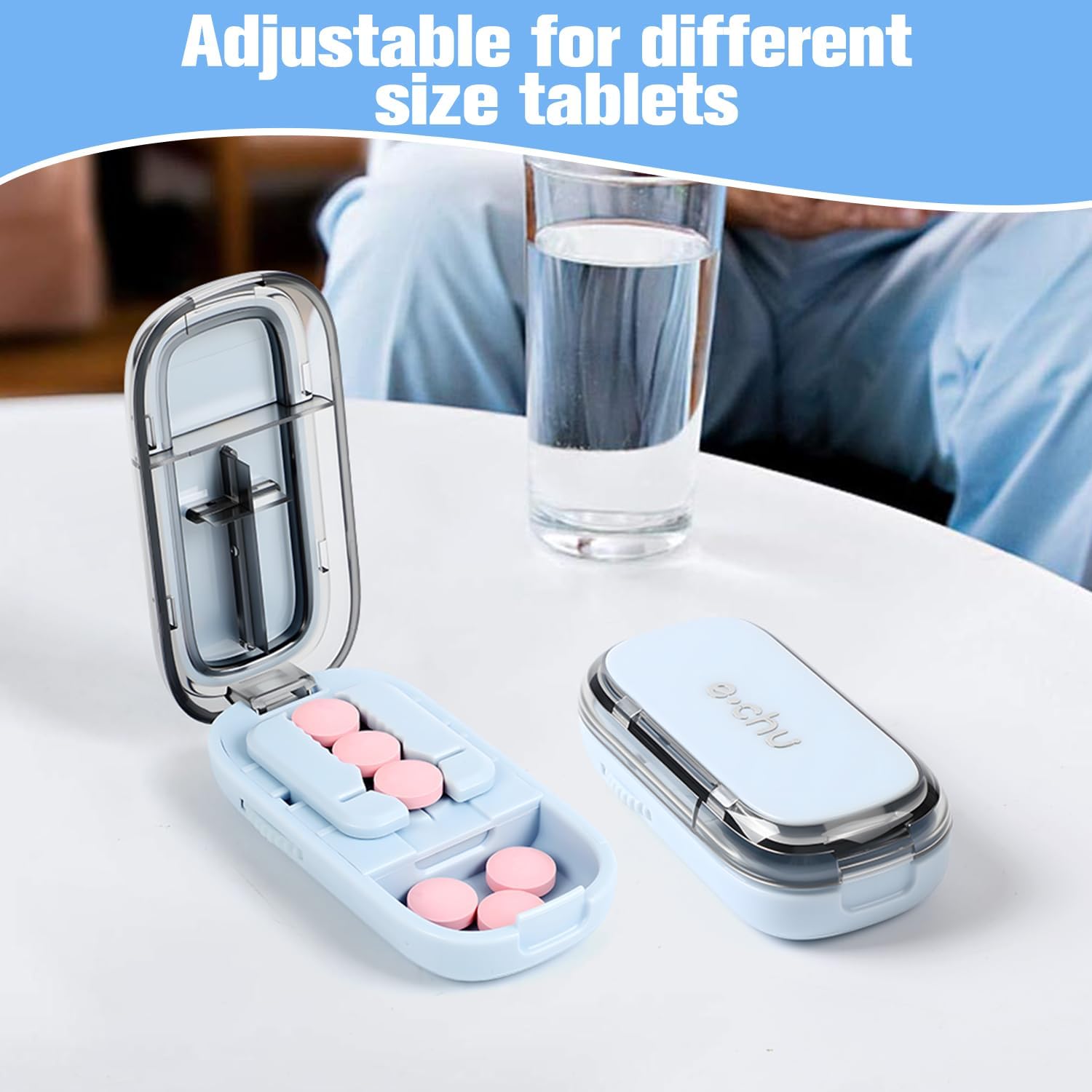 Pill Cutter Splitter for Small and Tiny Pills, Larger Pills, Echu Pill Cutter, Adjustable 1/2 1/4 Splitter with Improved Sharp Blade, Accurate Centering Alignment Device (Blue)