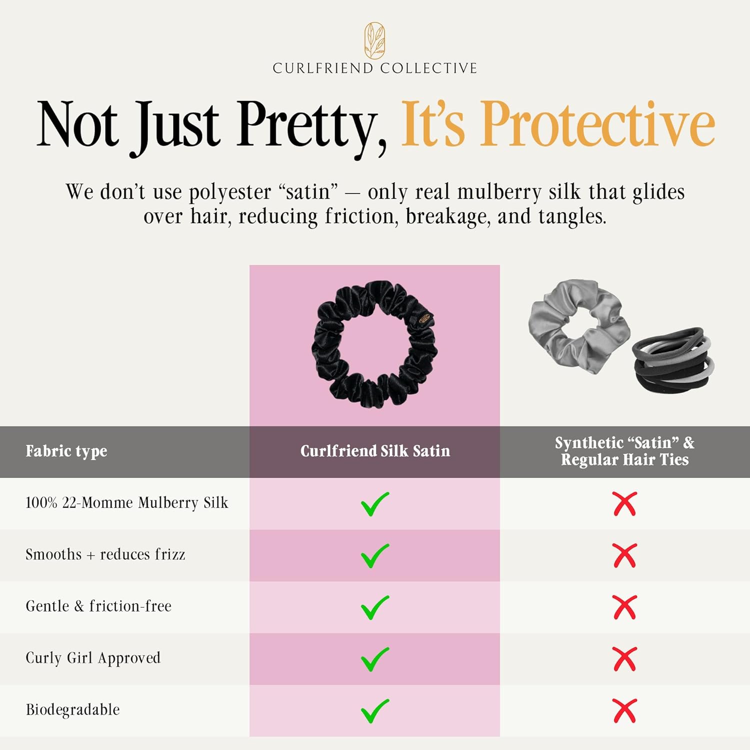 Curlfriend Collective Onyx Midi Curly Hair Silk Scrunchies for Women, Black | 22 Momme Mulberry Silk Hair Ties for Curly, Coily, and Wavy Hair - Black, Pack of 4