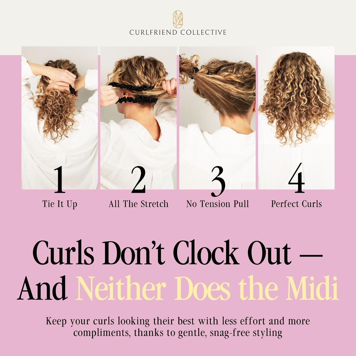 - SILK SCRUNCHIES FOR CURLY HAIR CARE: Whether you’re refreshing your puff or creating a sleek bun, our Onyx midi scrunchies are a must-have in any curly hair care routine. Hand washable and long-lasting, they offer luxurious style without compromising comfort or performance.