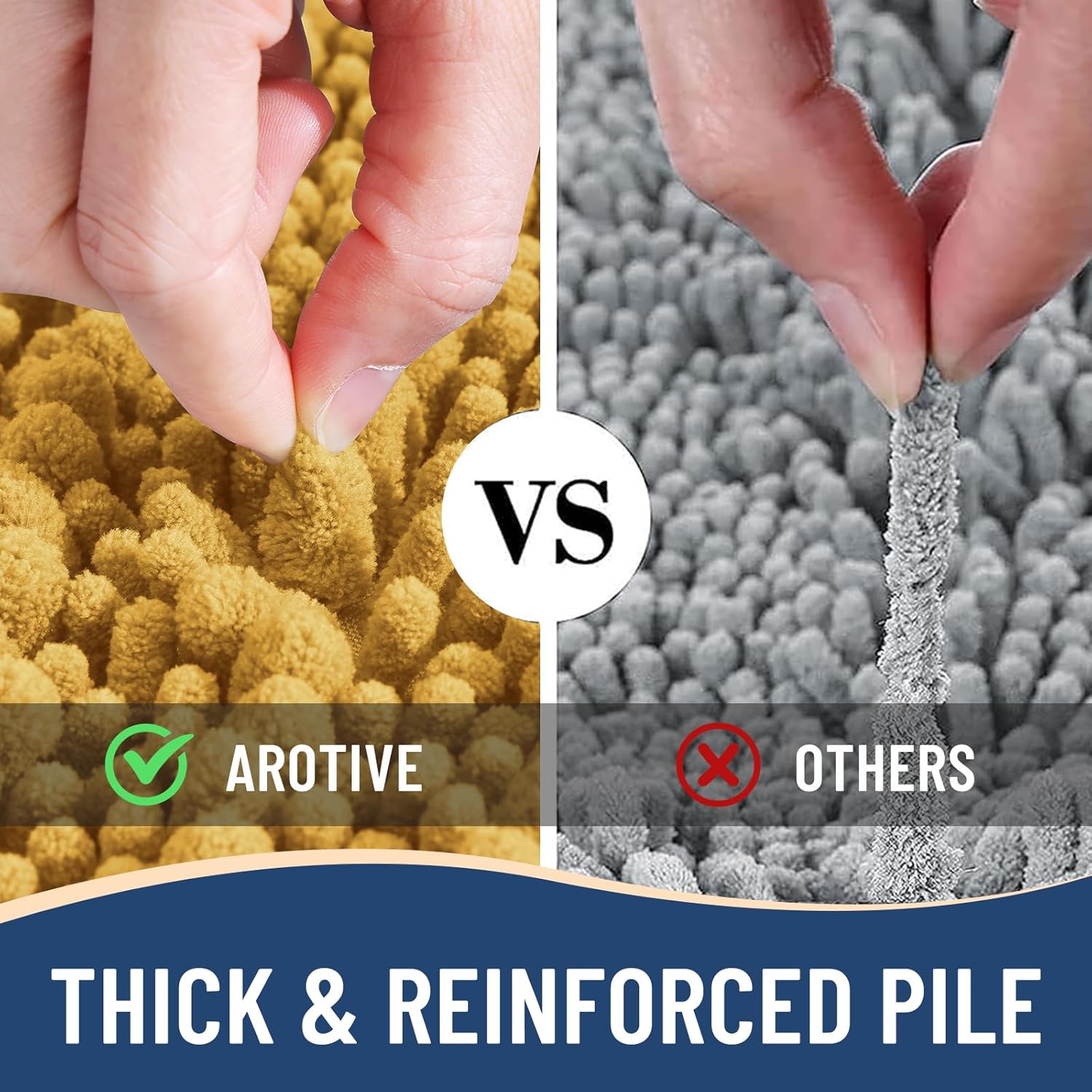 - Anti-Skid Backing: Arotive chenille bathroom rugs feature a non-slip bottom consisting of sturdy mesh PVC material that stops the bath mat from shifting and skidding. The middle layer is 4 mm memory foam, which can let you feel more comfortable when wrapping into the rugs. WARNING: Place bath mat on CLEAN DRY FLAT FLOOR ONLY. Water under bath rug can cause it to slip. Always keep the bottom of bath rug dry