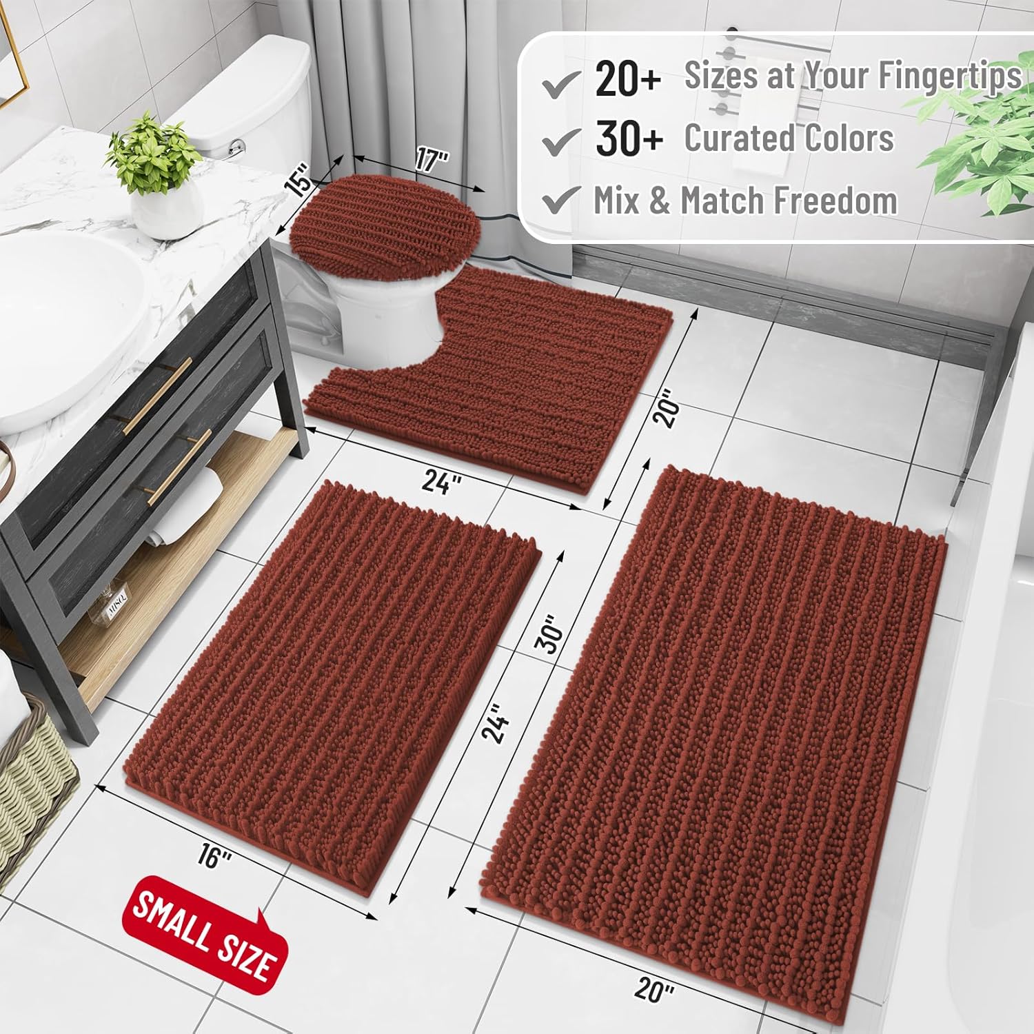Arotive Luxury Chenille Bathroom Rug Mat, Extra Soft Thick Absorbent Shaggy Bath Rugs, Non-Slip Machine Wash Dry, Plush Bath Mats for Bathroom, Shower and Tub, 24x16, Rustic Terracott