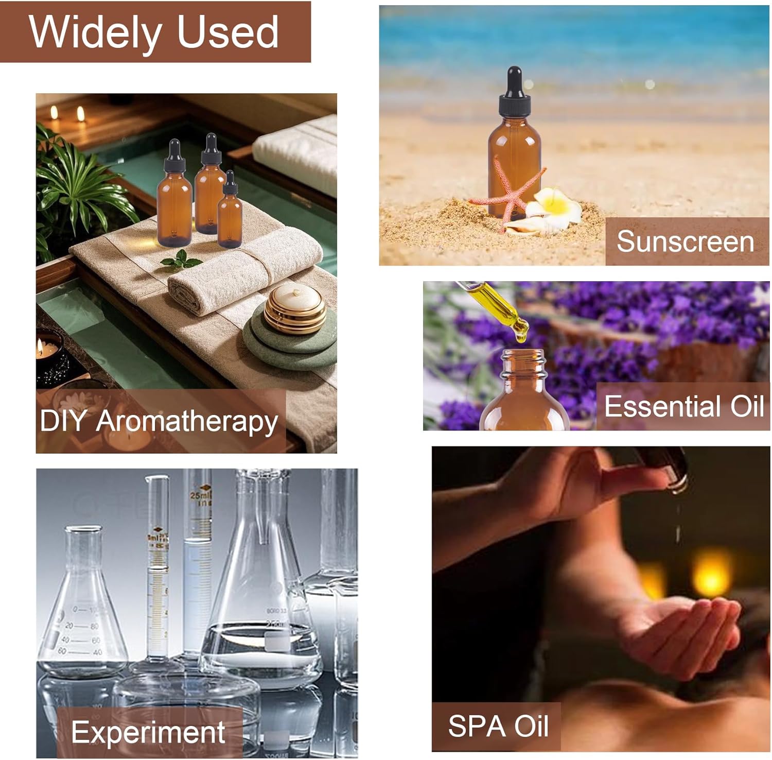 - ★SUNLIGHT RESISTANT: The Glass Bottle is made of Corrosion-resistant amber glass. Colored glass protects against chemical decomposition so that your essential oils would be safely protected from damaging sunlight and the risk of rapid evaporation