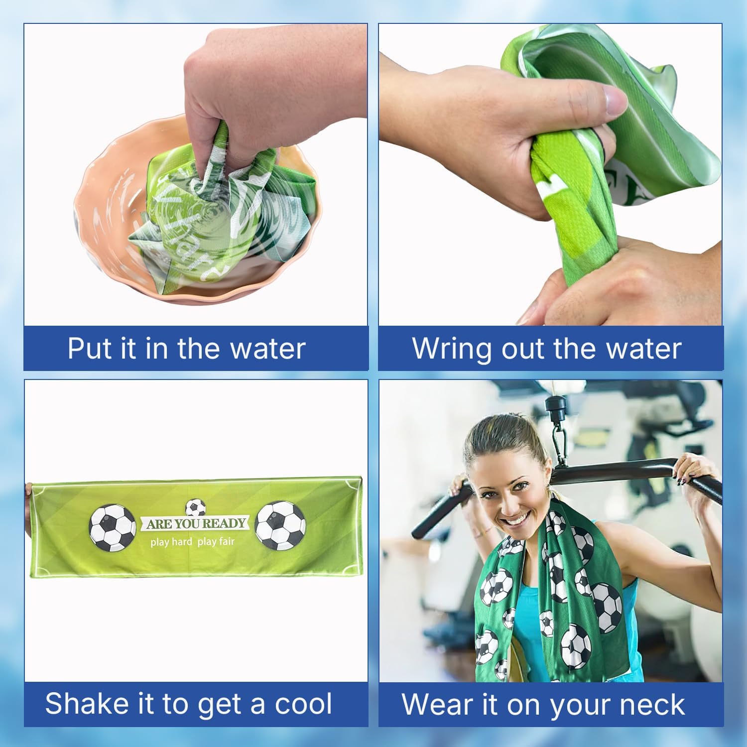 OPSO Softball Cooling Towel Set, 40 x 12 inches, 12 Pack, Microfiber Sports Towels for Baseball, Soccer, Golf LCE Towel Microfiber Sports Towels for Player (Soccer 3)