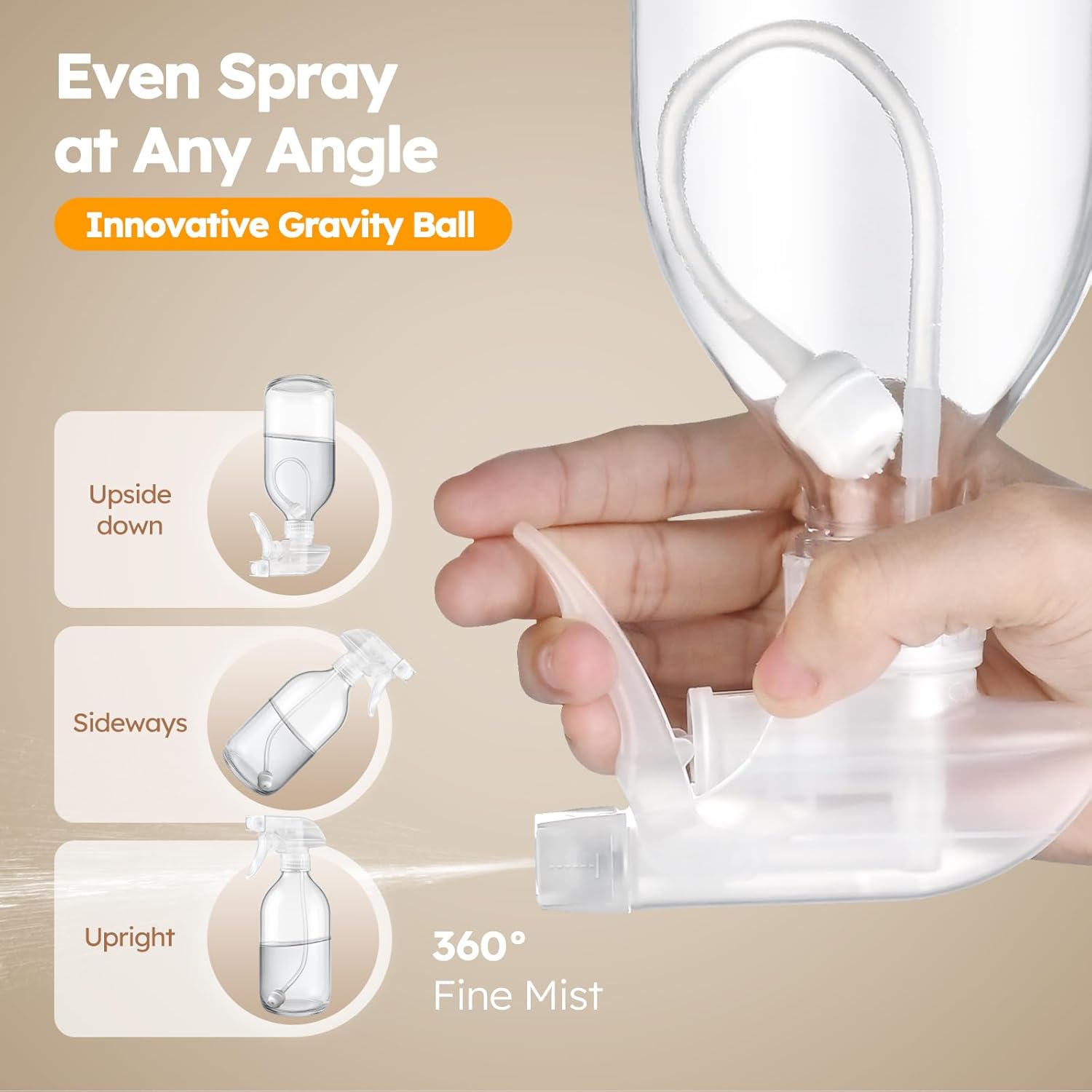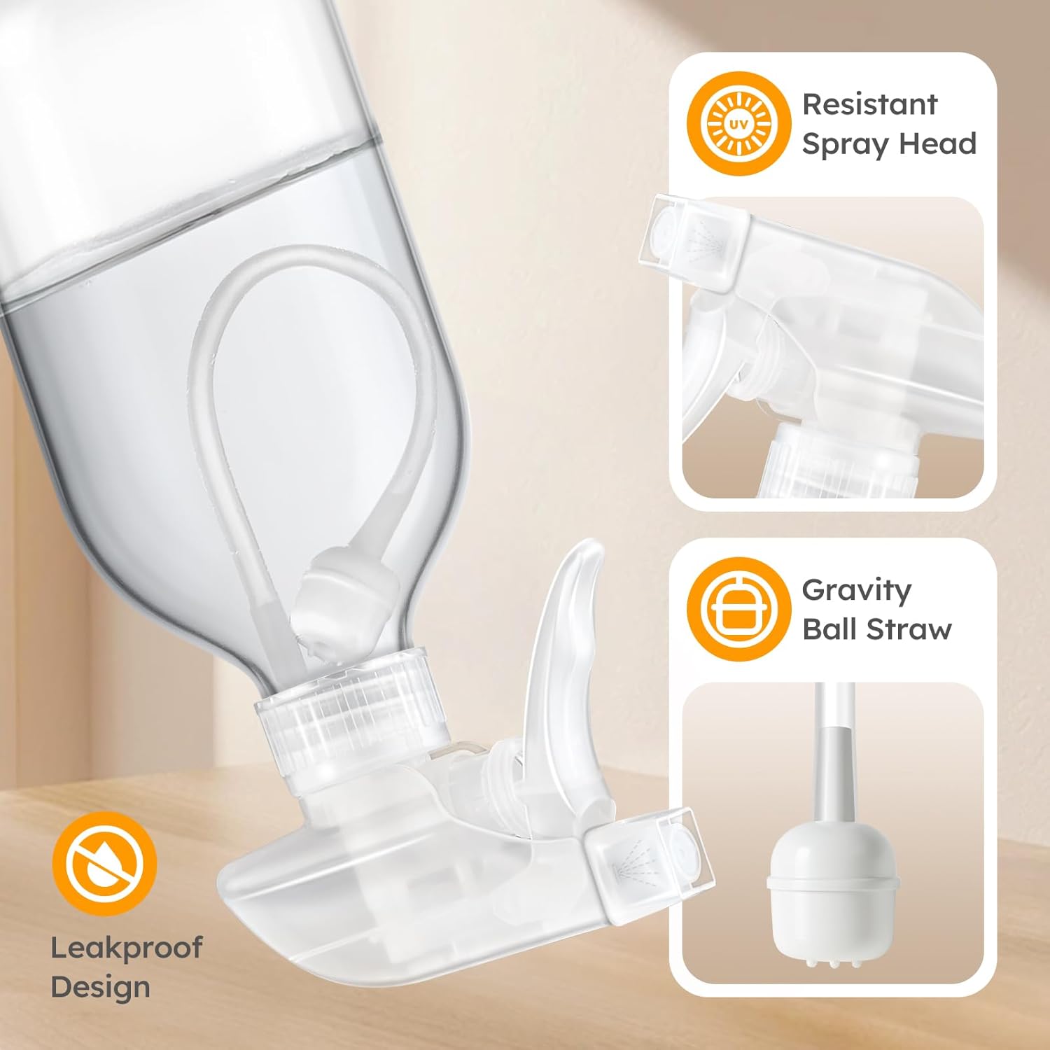 - 【360° All-Angle Spray】Designed with an advanced nozzle and gravity-ball system, our spray bottles let you spray upside down, sideways, or upright without interruption. Perfect for hard-to-reach spots, high shelves, or low-angle applications.