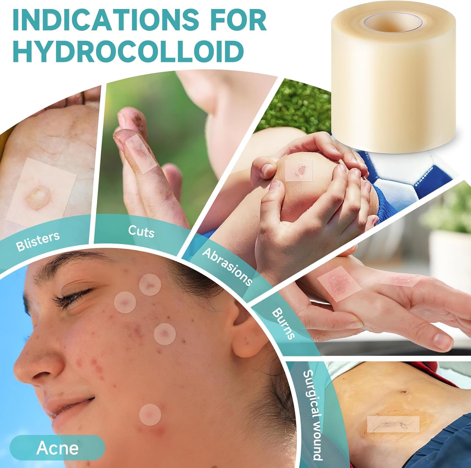 - ✔ 【Ultra-Absorbent, Waterproof & Skin-Friendly】Despite its feather-light thinness (only 0.3mm), this hydrocolloid roll dressing boasts superior absorption, holding up to 3x its weight in fluid. Its waterproof seal protects during showers, while the semi-transparent, hypoallergenic, latex-free adhesive secures firmly yet removes painlessly without damaging new skin