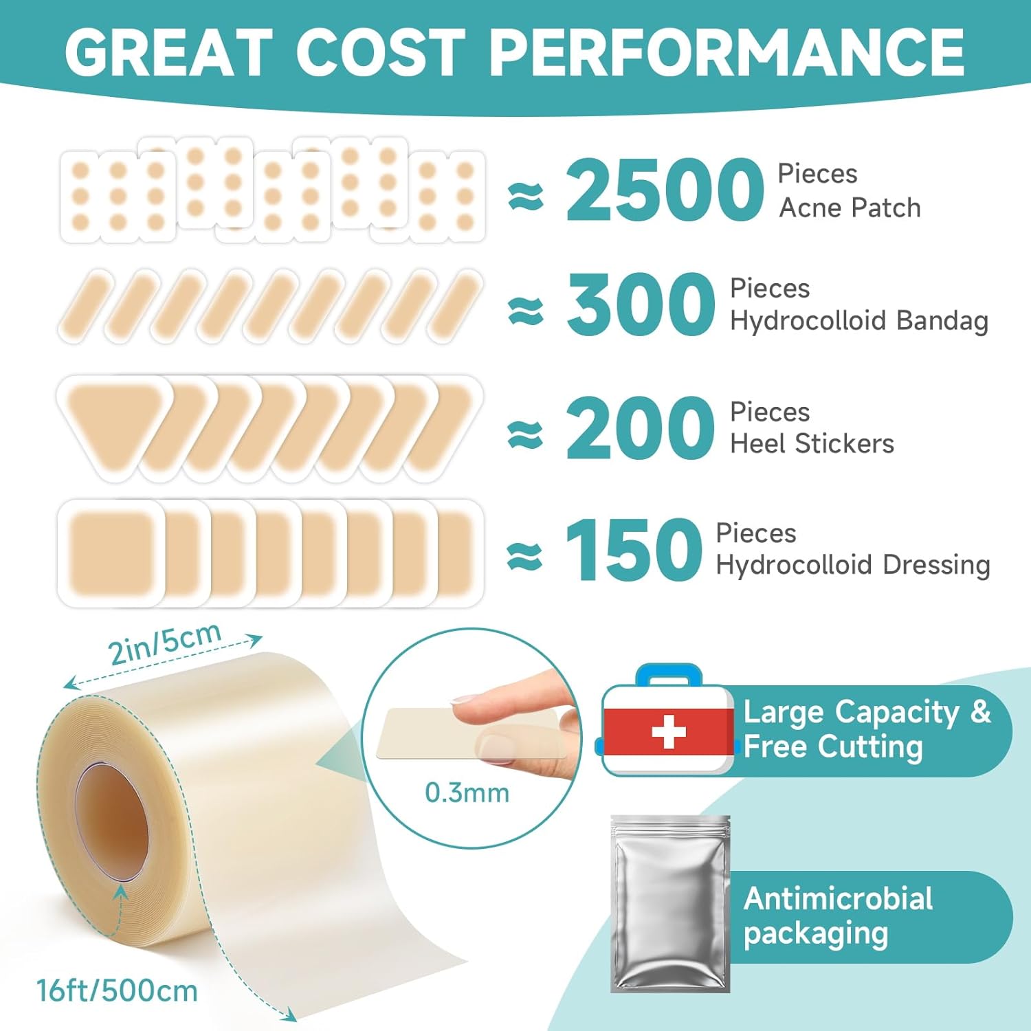 - ✔ 【Exceptional Value Long-Term Solution】This extra-large 2-inch by 16-foot hydrocolloid bandages offers tremendous value, allowing you to create hundreds of custom patches for a fraction of the cost of pre-cut bandages. It's the most economical and versatile choice for first-aid kits, long-term wound care, and post-operative recovery—making it an essential solution for healing persistent pimples & acne, blisters, and minor burns