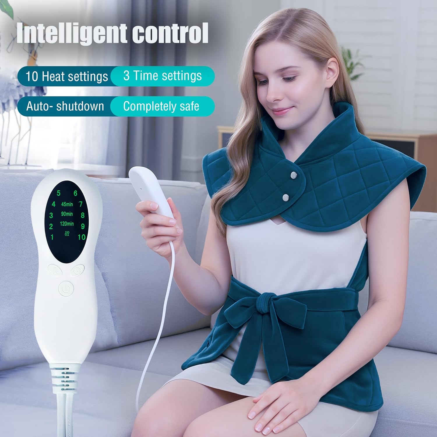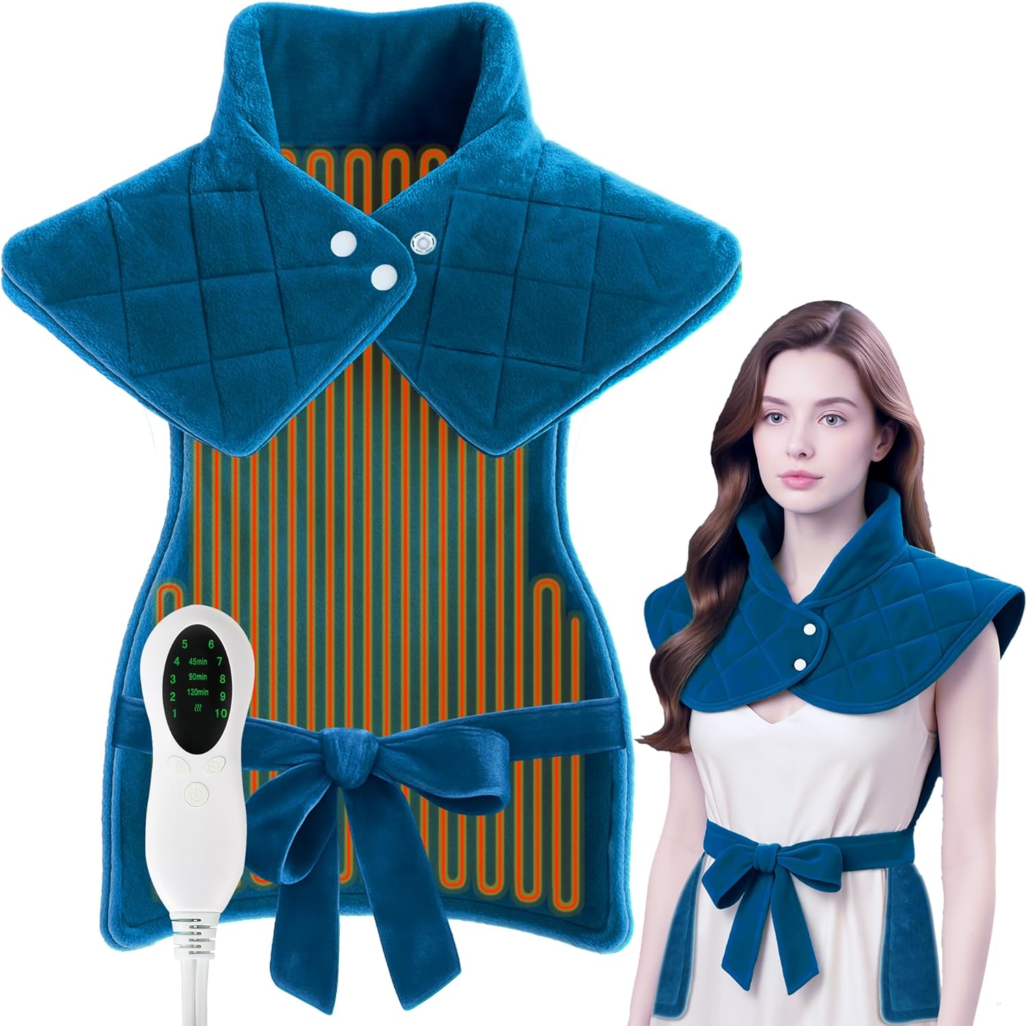 - TAILOR YOUR COMFORT WITH PRECISION:The heating pad shawl has 10 customizable heat levels + 3 smart timers for all-day relief,perfect for uninterrupted office work, postgym recovery, or nighttime use,no overheating risks