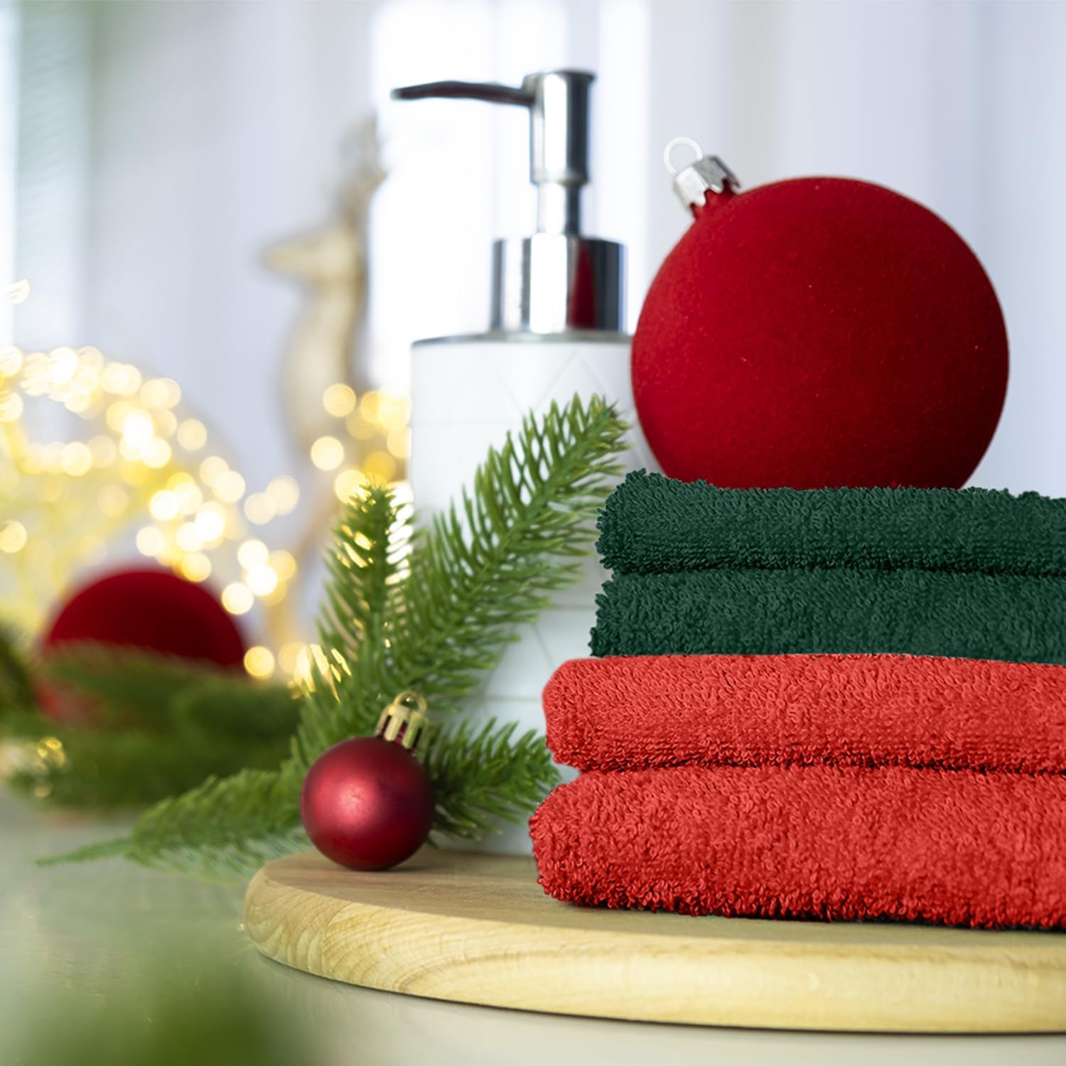 DAN RIVER 100% Cotton Christmas Gift Washcloths 24 Pack Premium Quality Face and Body Cloth, Quick Dry Essential Towels for Bathroom, Hand, Kitchen & Cleaning | 12X12 in | 400 GSM | Red & Green combo