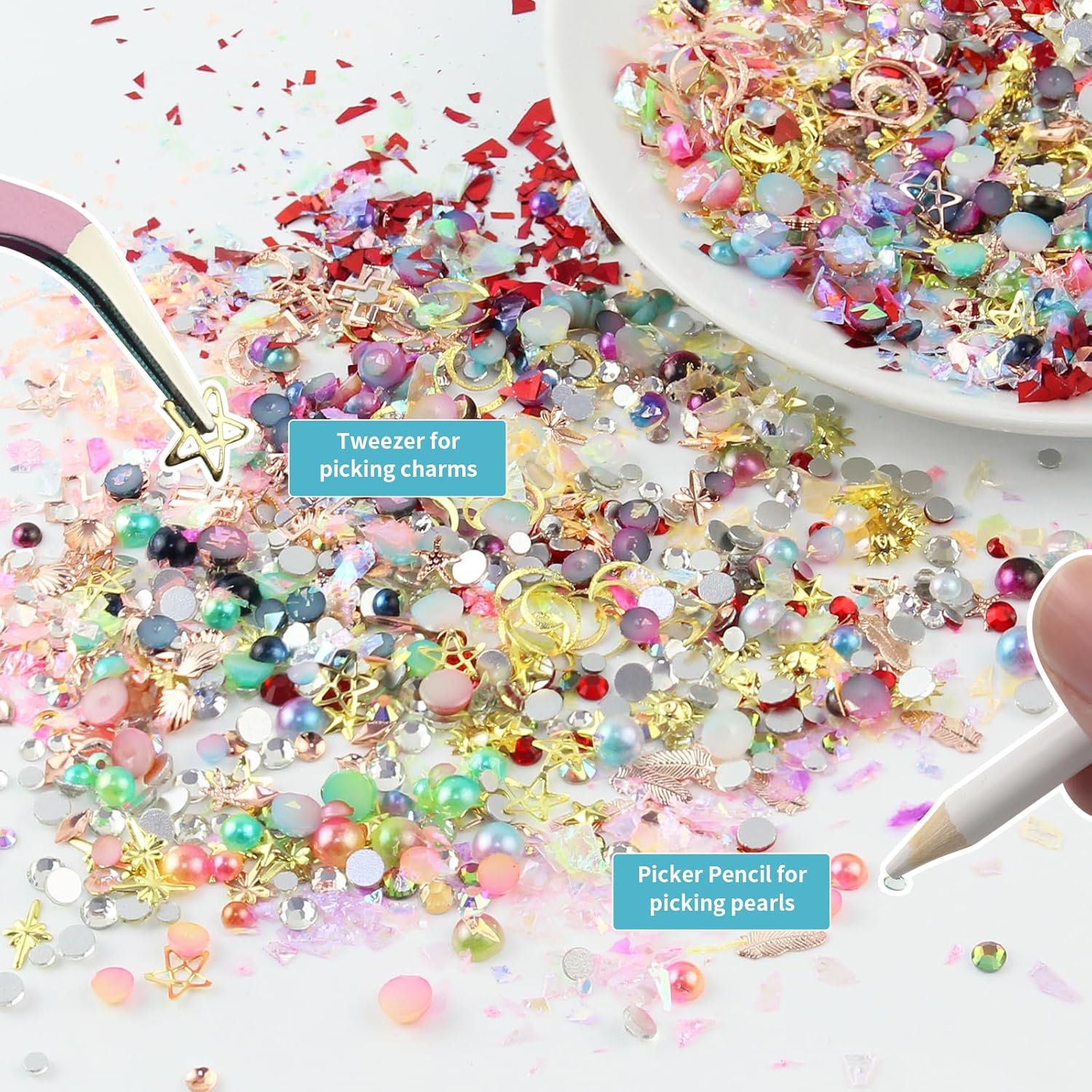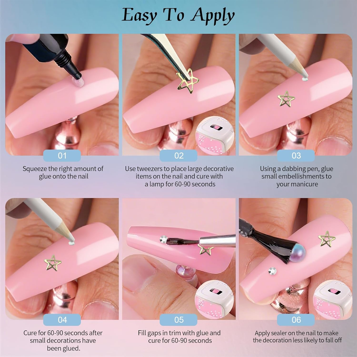 - Easy to Use for All Skill Levels: Whether youâre a beginner or a pro, this kit simplifies nail art! Use the included tweezers to pick up tiny gems/charms, then apply with nail glue (or top coat for stickers). The stickers can be directly pressed onto nails and trimmed as needed. No complex tools requiredâcreate salon - like nail art at home in minutes.